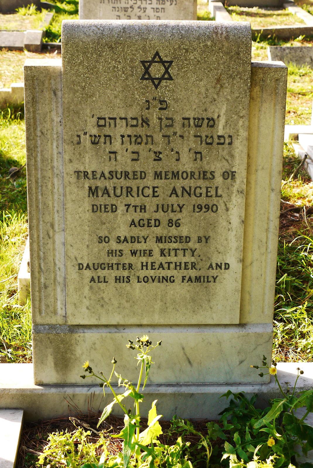 (1025) Maurice ANGEL died 07/07/1990, buried at Boscombe, plot no. R6-159 (B-R6-159.jpg)