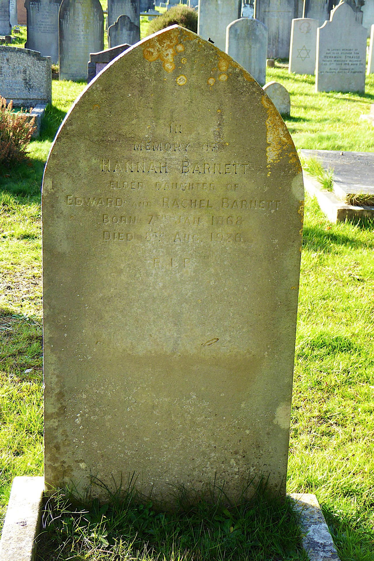 (1045) Hannah BARNETT died 08/08/1926, buried at Boscombe, plot no. H6-140 (B-H6-140.jpg)