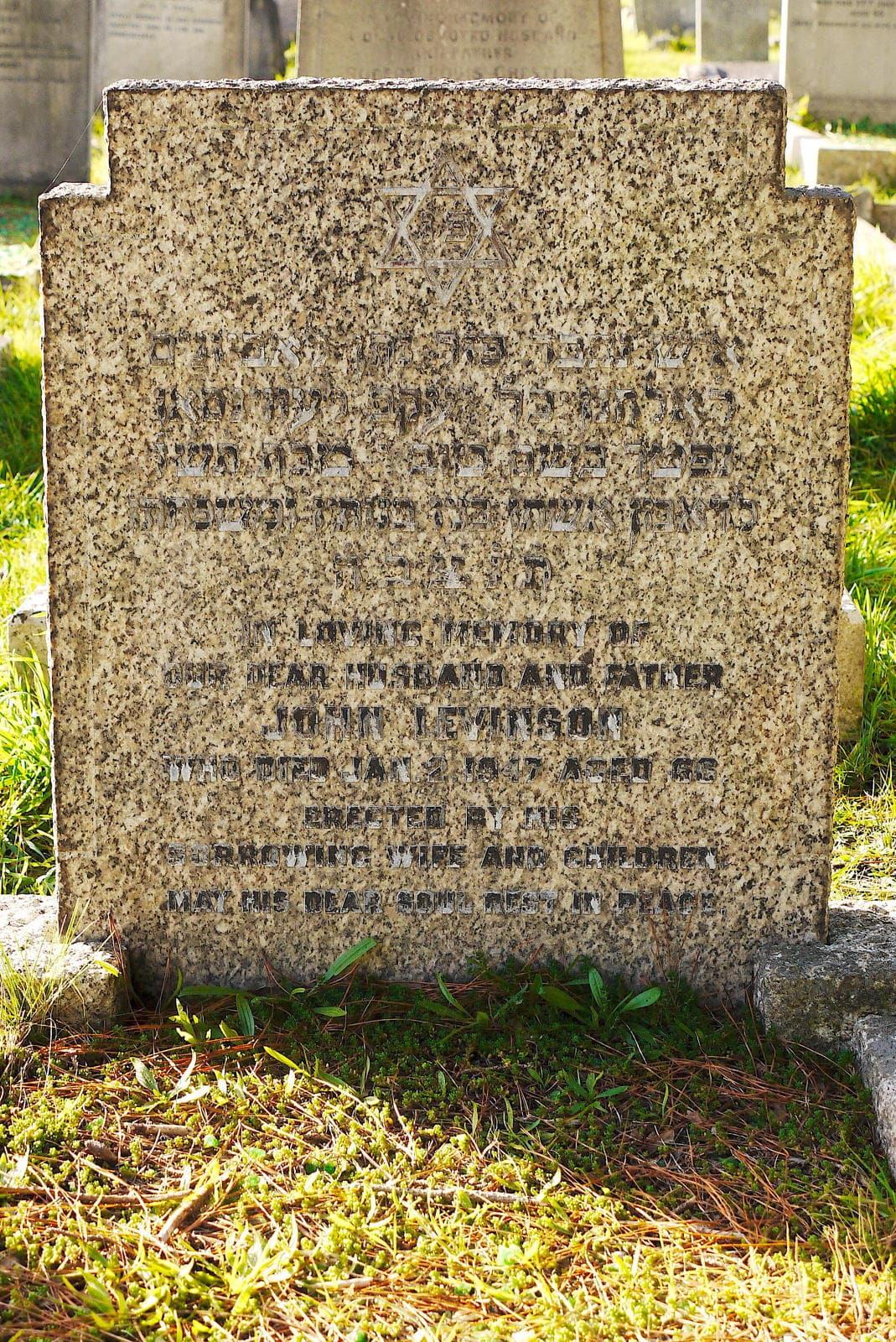 (1409) John LEVINSON died 02/01/1947, buried at Boscombe, plot no. O6-159 (B-O6-159.jpg)