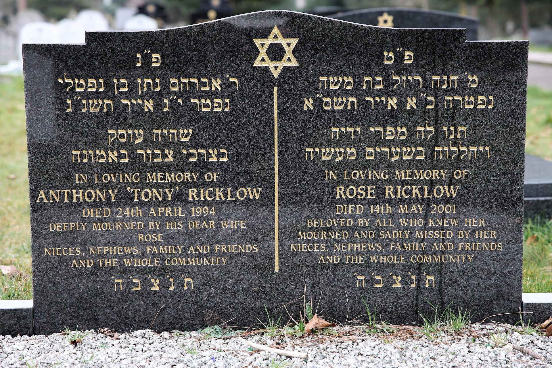 Additional Information: Died in London. OBITUARY MRS ROSE RICKLOW The members of Bournemouth Emunah were very saddened to learn of the passing of our beloved Life President, Rose Ricklow Rose became Chairman in 1973 until 1987, when she was installed as Life President. For many years, Rose, together with her husband Tony, worked unstintingly to raise large sums of money for our children's homes in Israel. In the early years they hosted an annual Melava Malka, for which Rose did all the catering. Rose was very successful in persuading her friends to leave legacies to Emunah. Although Rose and Tony had no children, they regarded the children in Israel, as their own and derived much pleasure and satisfaction from seeing the results of their endeavours on their frequent visits to the Emunah homes. Rose was a ver respected and popular member of our community and will be greatly missed. Lydia Camissar Chairman Bournemouth Emunah