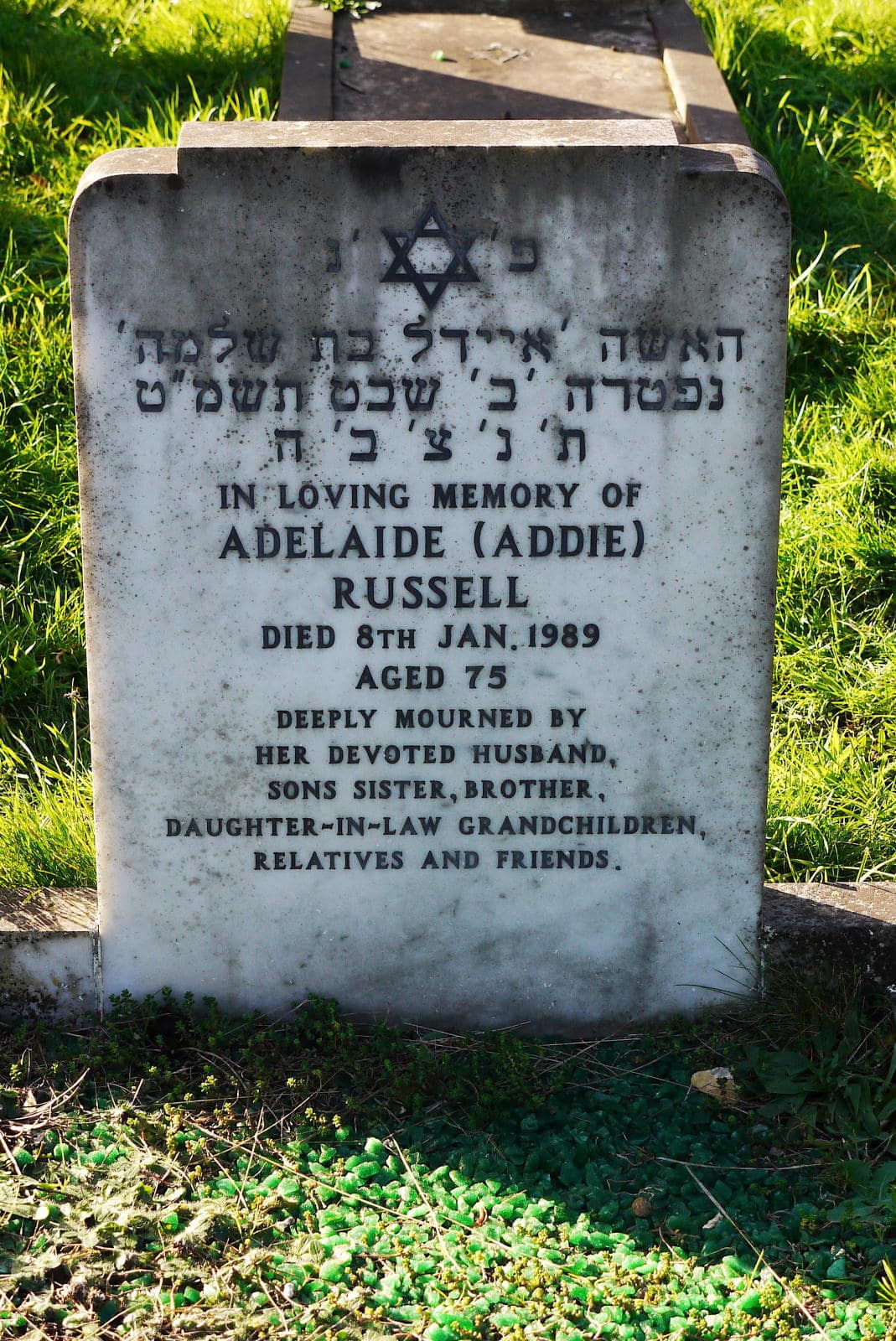 (1596) Adelaide RUSSELL died 08/01/1989, buried at Boscombe, plot no. O6-174 (B-O6-174.jpg)