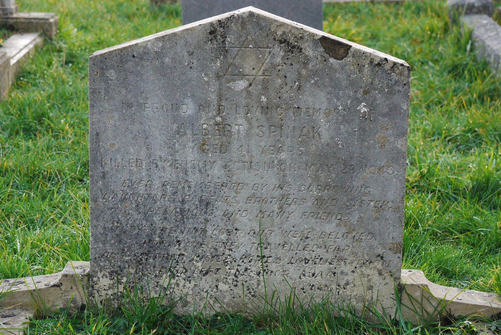 (1684) Albert SPINAK died 23/05/1943, buried at Boscombe, plot no. G6-157 (B-G6-157.jpg)