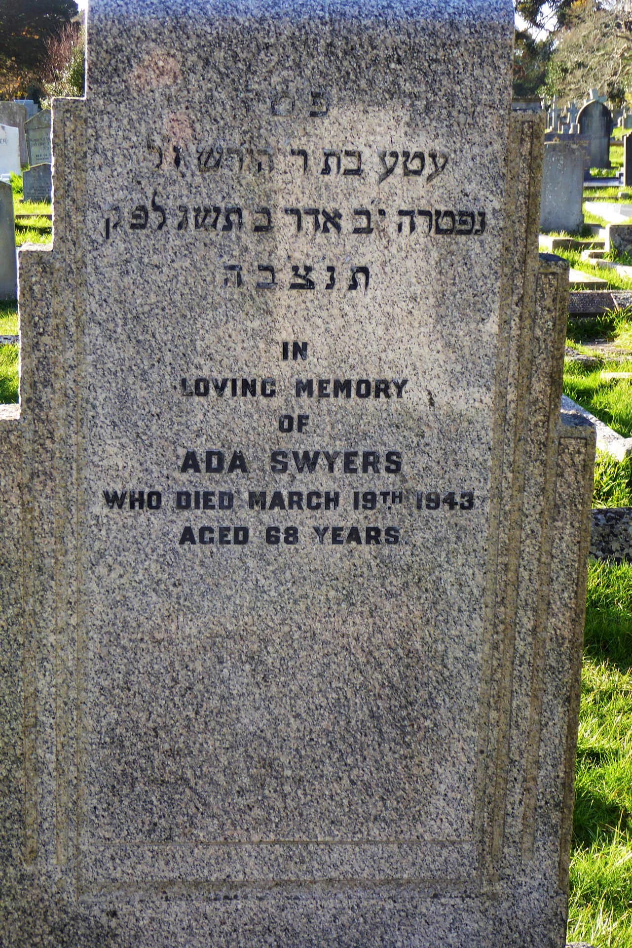 (1710) Ada SWYERS died 19/03/1943, buried at Boscombe, plot no. H6-156 (B-H6-156.jpg)