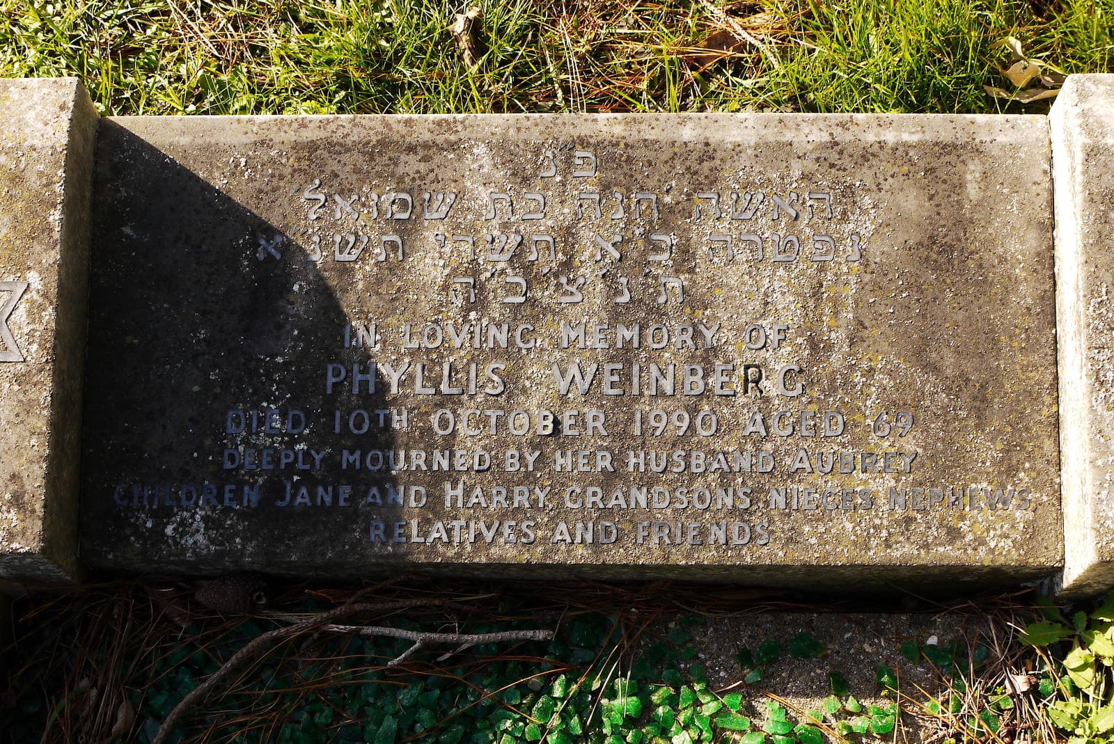 (1732) Phyllis WEINBERG died 10/10/1990, buried at Boscombe, plot no. R6-162 (B-R6-162.jpg)