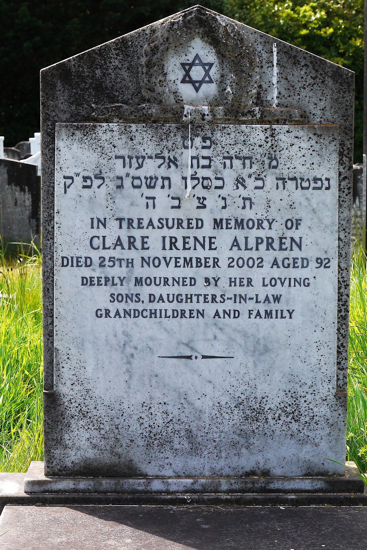 (1778) Clare ALPREN died 25/11/2002, buried at Kinson, plot no. J3-128 (K3-J3-128.jpg)