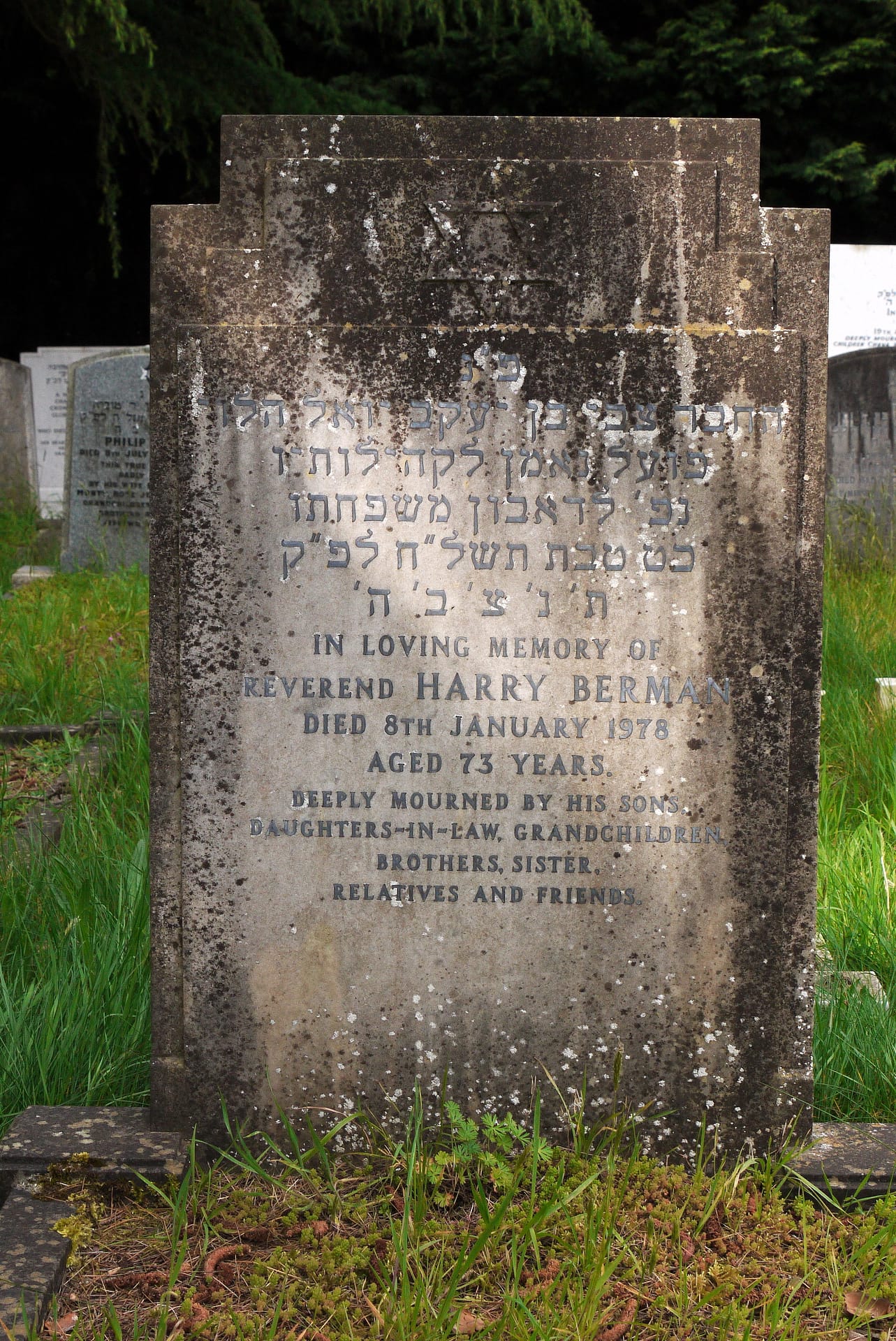 (1825) Harry BERMAN died 08/01/1978, buried at Kinson, plot no. P3-90 (K3-P3-90.jpg)