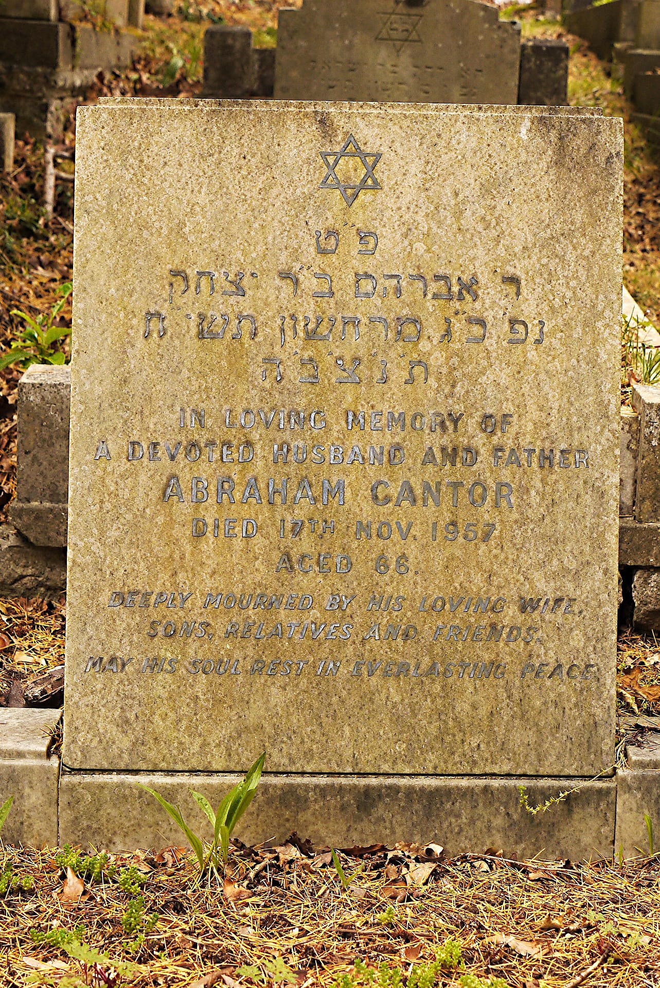 (1895) Abraham CANTOR died 18/11/1957, buried at Kinson, plot no. S51- (K1-S-51.jpg)
