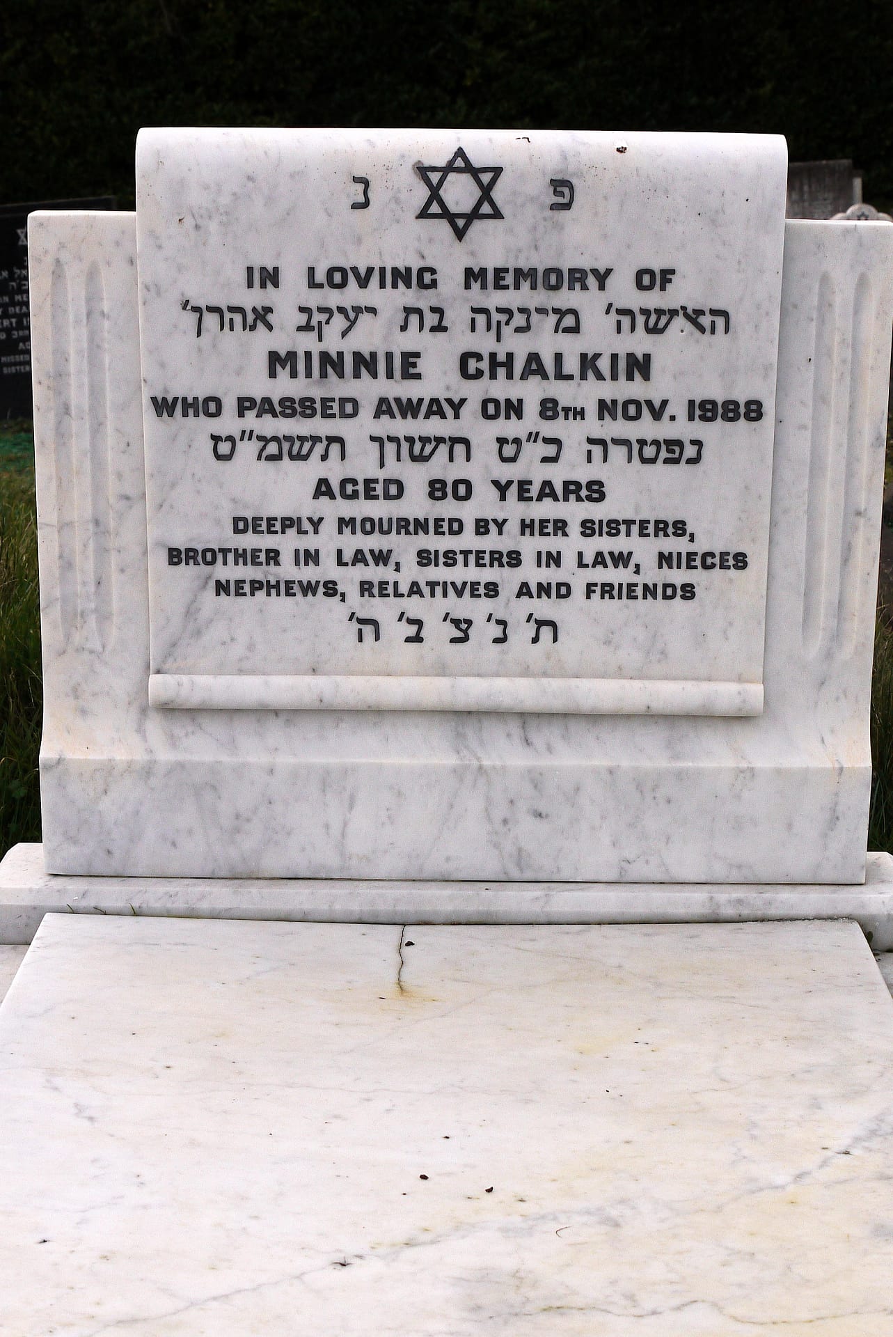 (1908) Minnie CHALKIN died 08/11/1988, buried at Kinson, plot no. M3-140 (K3-M3-140.jpg)