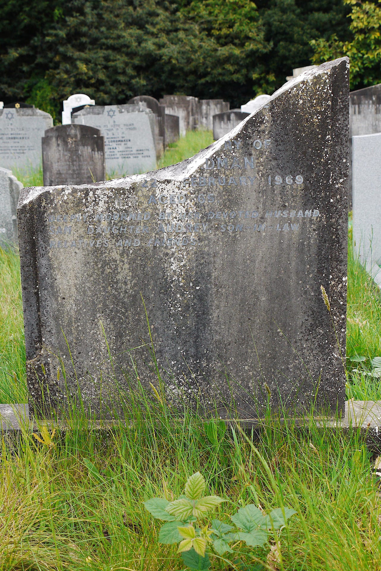 (2054) Edna FREEDMAN died 22/02/1969, buried at Kinson, plot no. L3-105 (K3-L3-105.jpg)