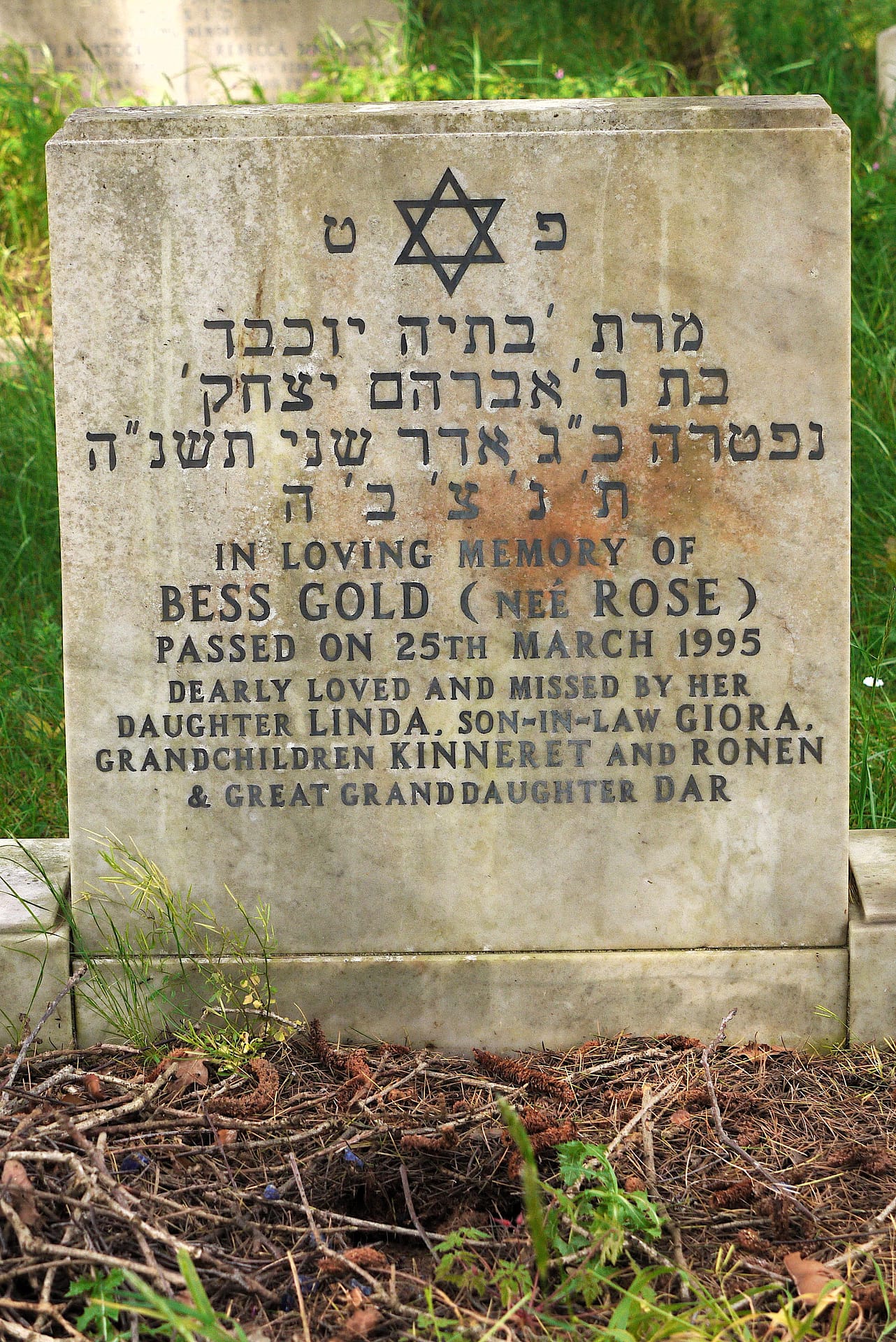 (2091) Bess GOLD died 25/03/1995, buried at Kinson, plot no. Q3-84 (K3-Q3-84.jpg)