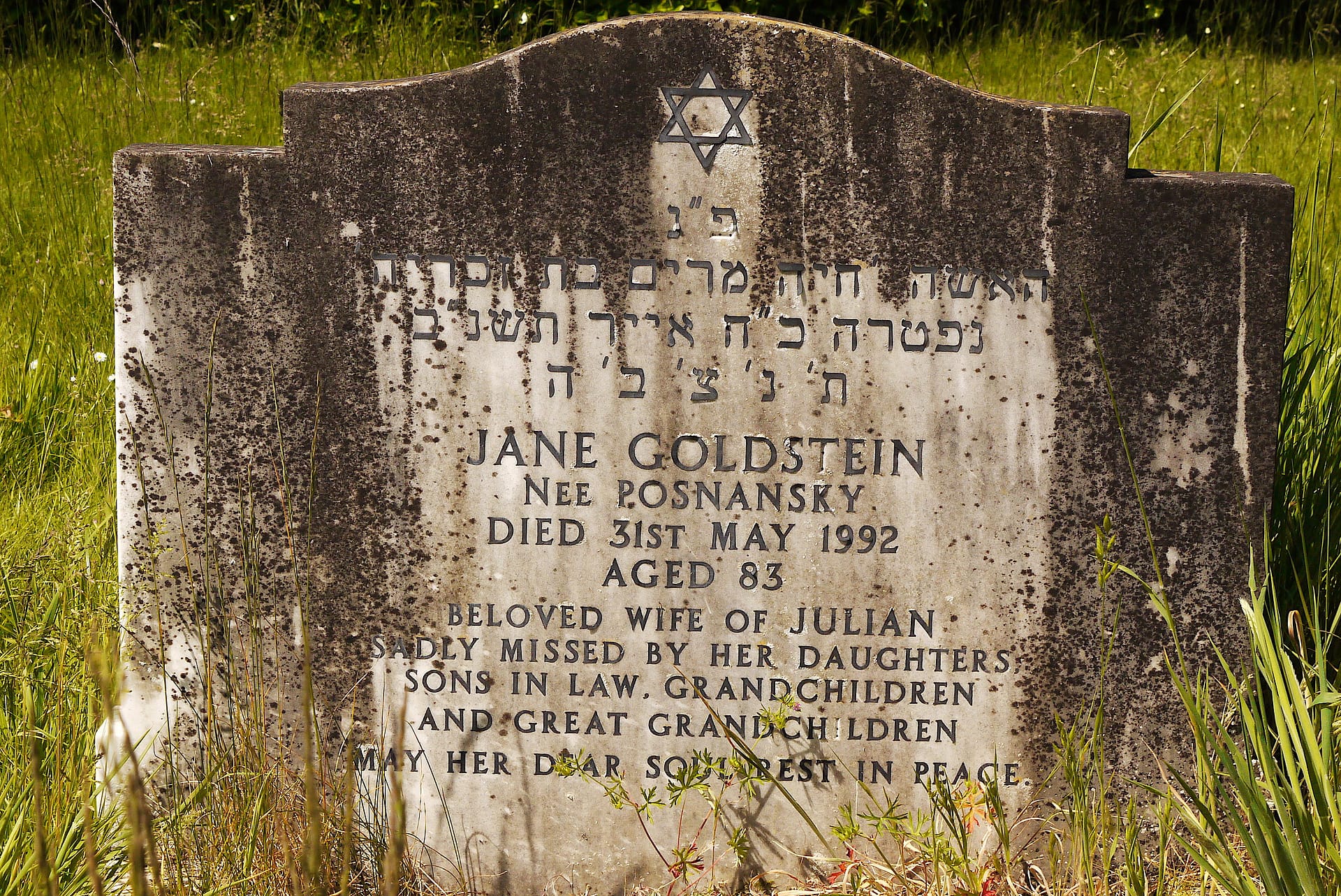 (2110) Jane GOLDSTEIN died 31/05/1992, buried at Kinson, plot no. U3-142 (K3-U3-142.jpg)