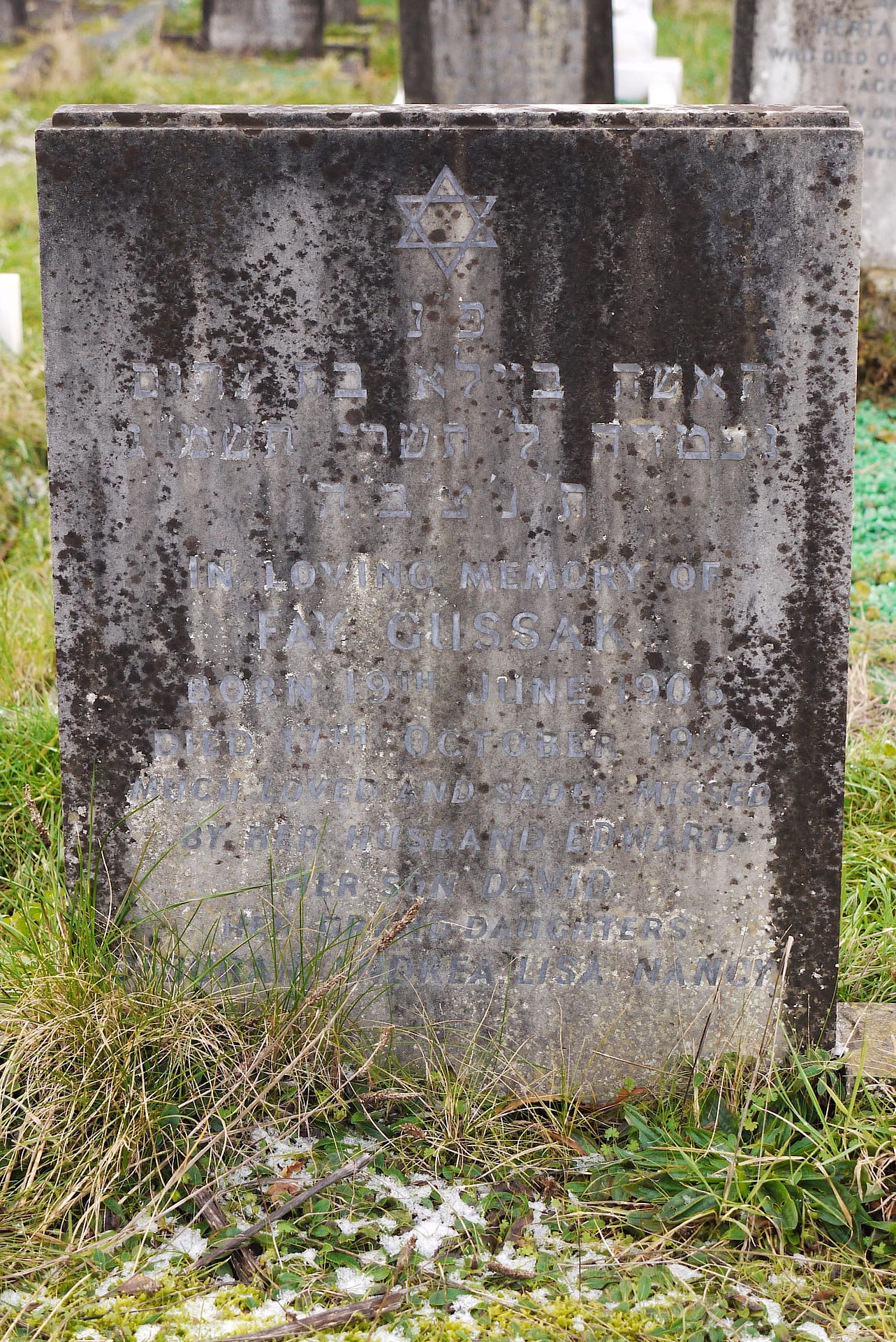 (2151) Fay GUSSAK died 17/10/1982, buried at Kinson, plot no. N3-125 (K3-N3-125.jpg)