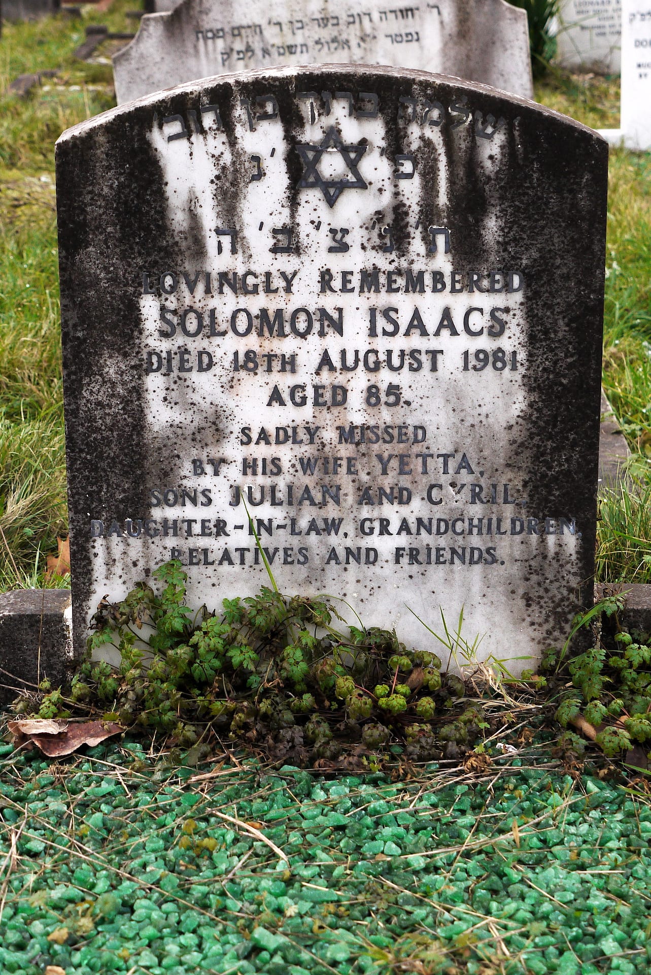 (2187) Solomon ISAACS died 18/08/1981, buried at Kinson, plot no. M3-122 (K3-M3-122.jpg)