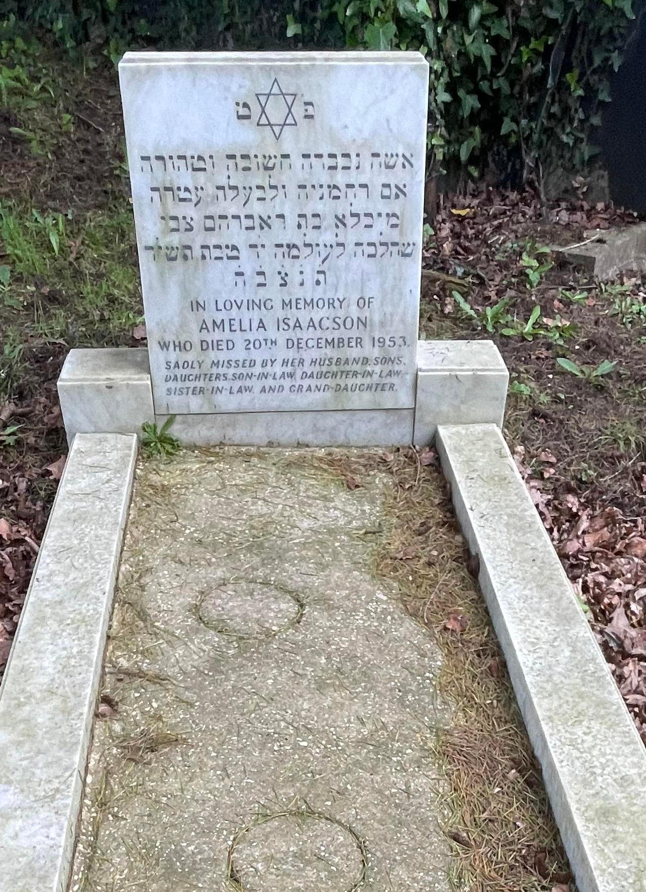(2199) Amelia ISAACSON died 19/12/1953, buried at Kinson, plot no. W50 (K1-W-50.jpg)