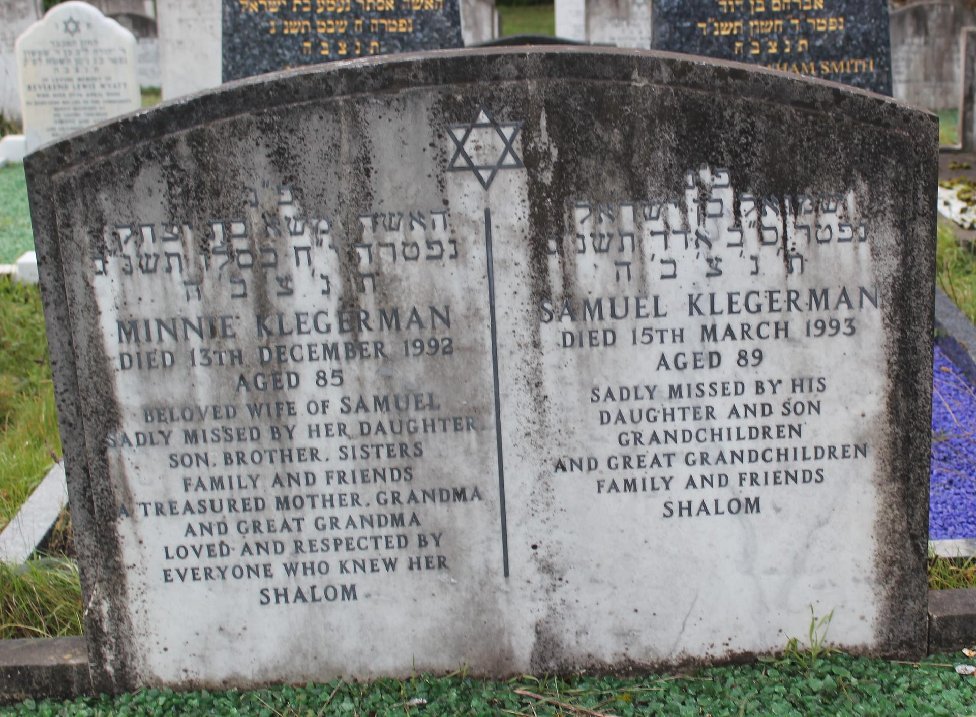 (2250) Samuel KLEGERMAN died 15/03/1993, buried at Kinson, plot no. N3-147 (K3-N3-147.jpg)