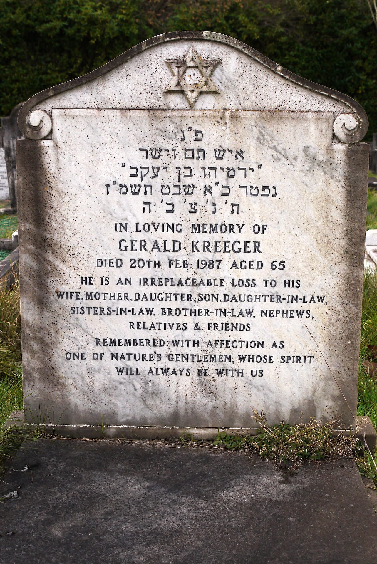 (2262) Gerald KREEGER died 20/02/1987, buried at Kinson, plot no. M3-136 (K3-M3-136.jpg)