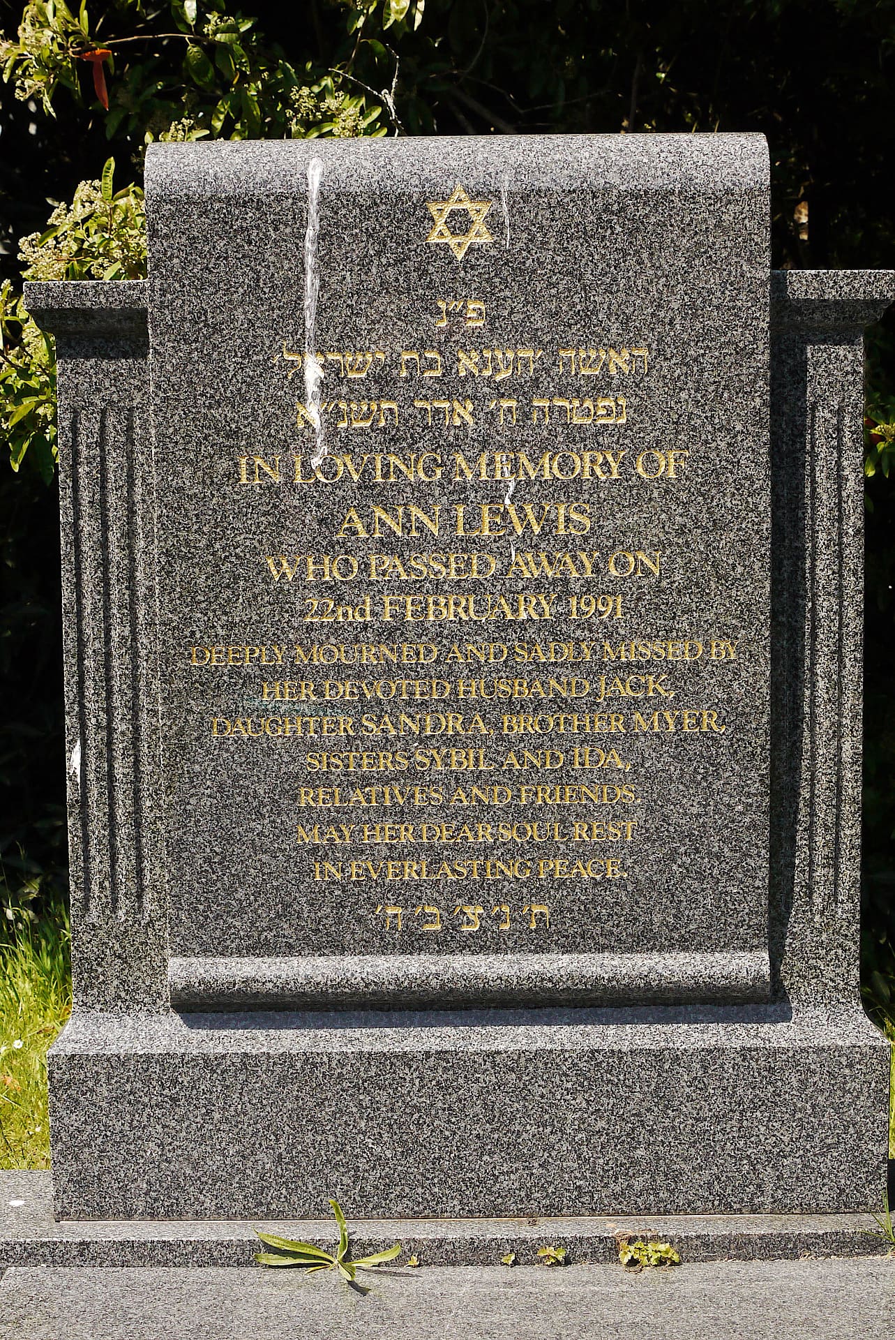 (2340) Ann LEWIS died 22/02/1991, buried at Kinson, plot no. U3-106 (K3-U3-106.jpg)