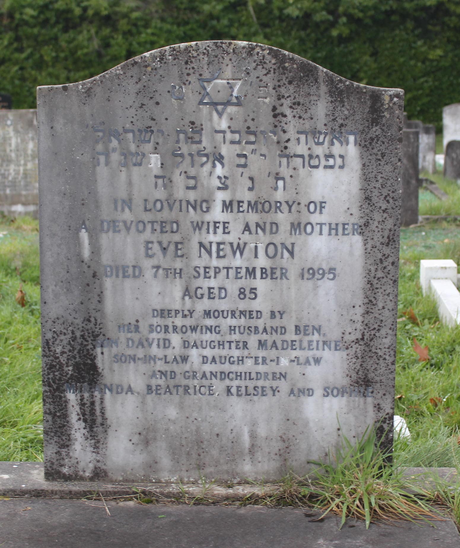 (2437) Eve NEWTON died 07/09/1995, buried at Kinson, plot no. J3-141 (K3-J3-141.jpg)