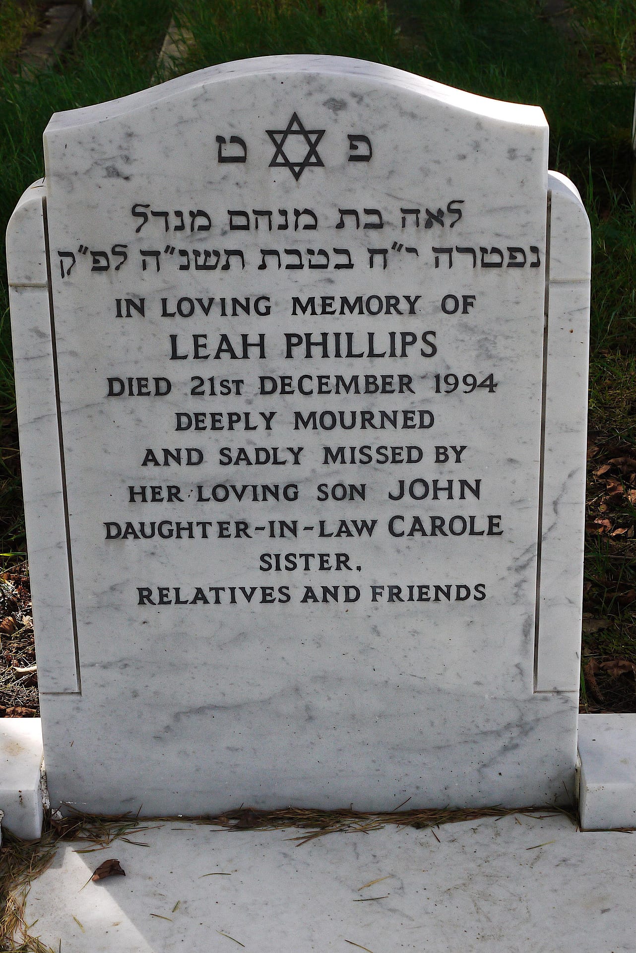 (2460) Leah PHILLIPS died 21/12/1994, buried at Kinson, plot no. O3-85 (K3-O3-85.jpg)