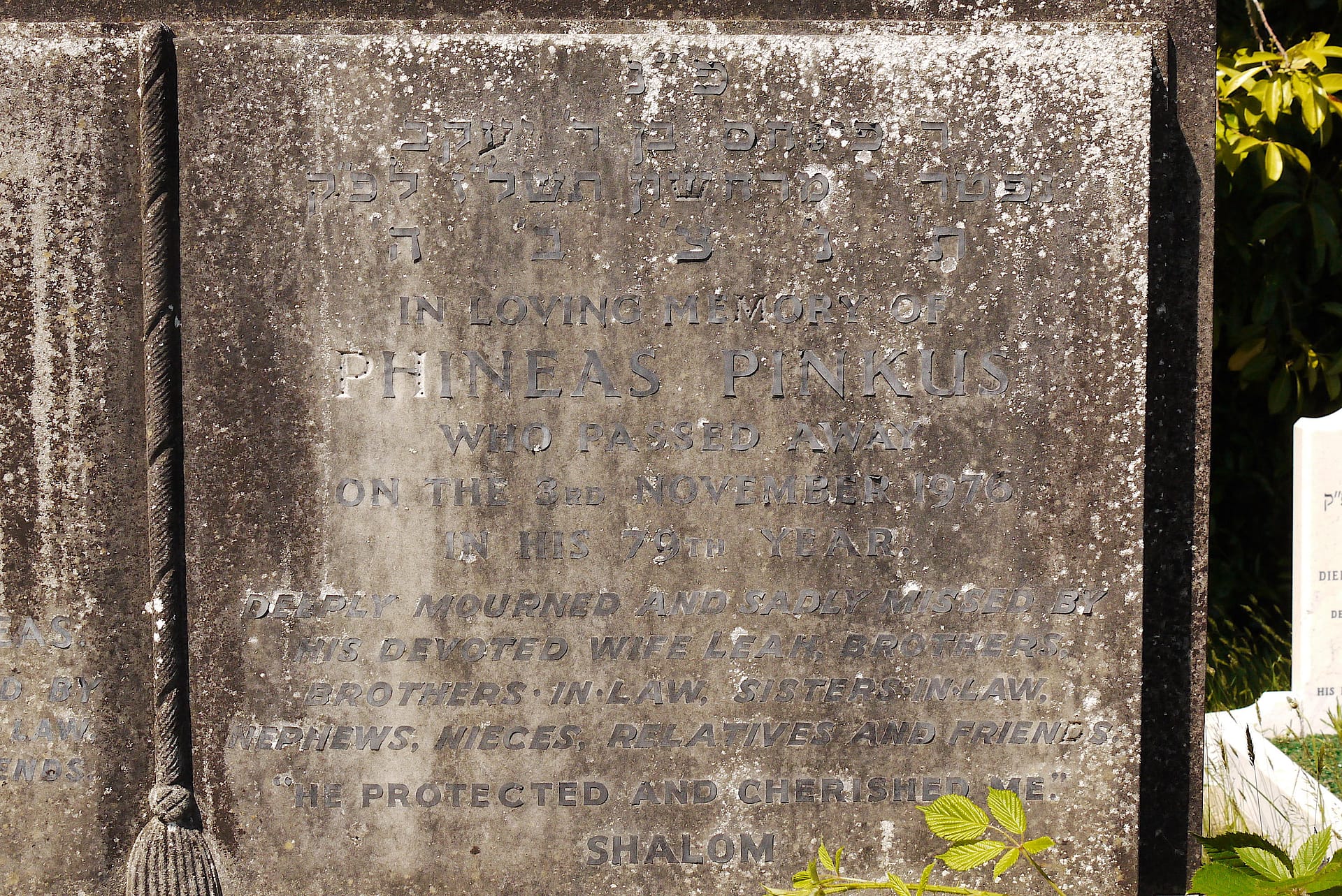 (2474) Phineas PINKUS died 03/11/1976, buried at Kinson, plot no. T3-110 (K3-T3-110.jpg)