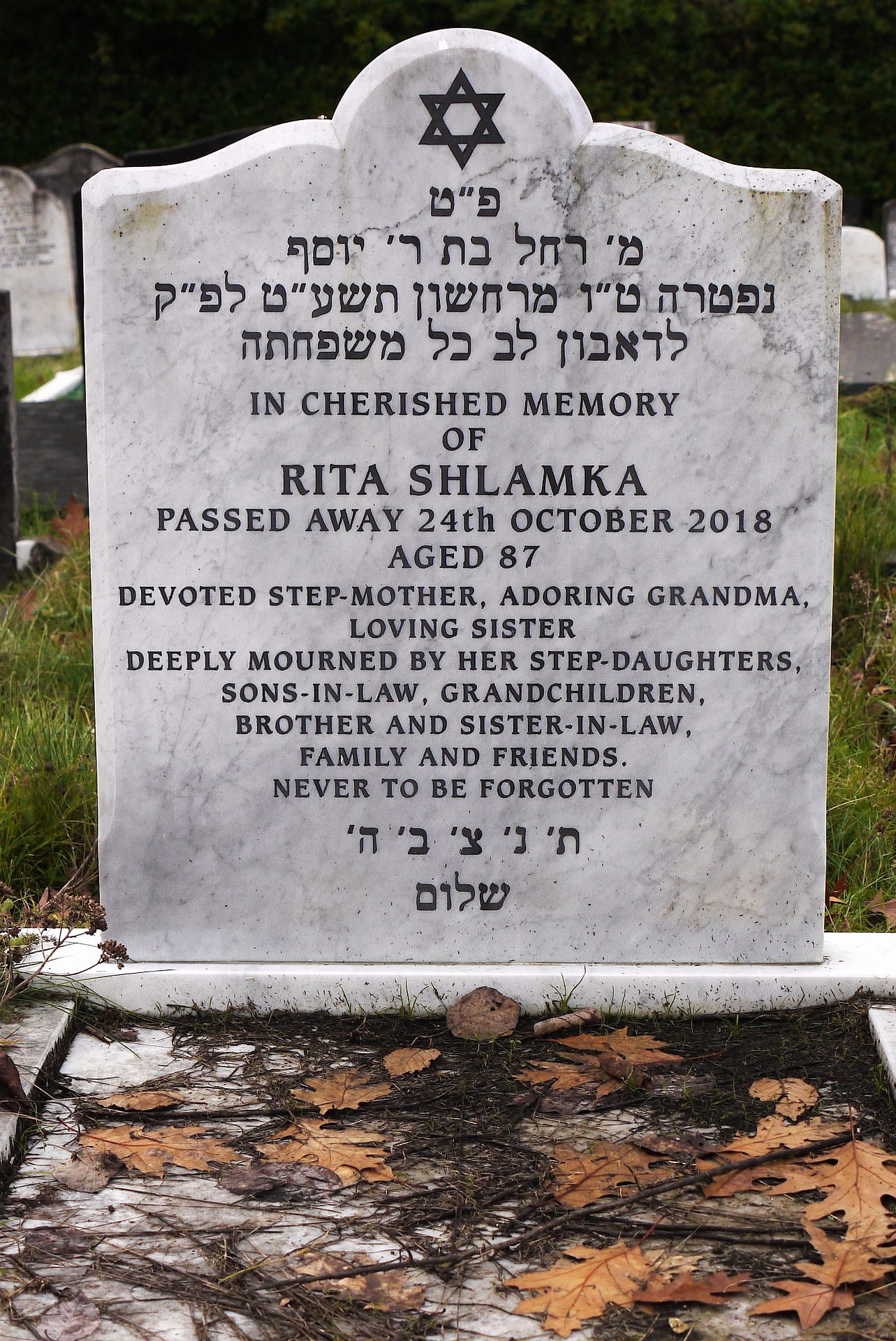 (2603) Rita SHLAMKA died 24/10/2018, buried at Kinson, plot no. H3-132 (K3-H3-132.jpg)