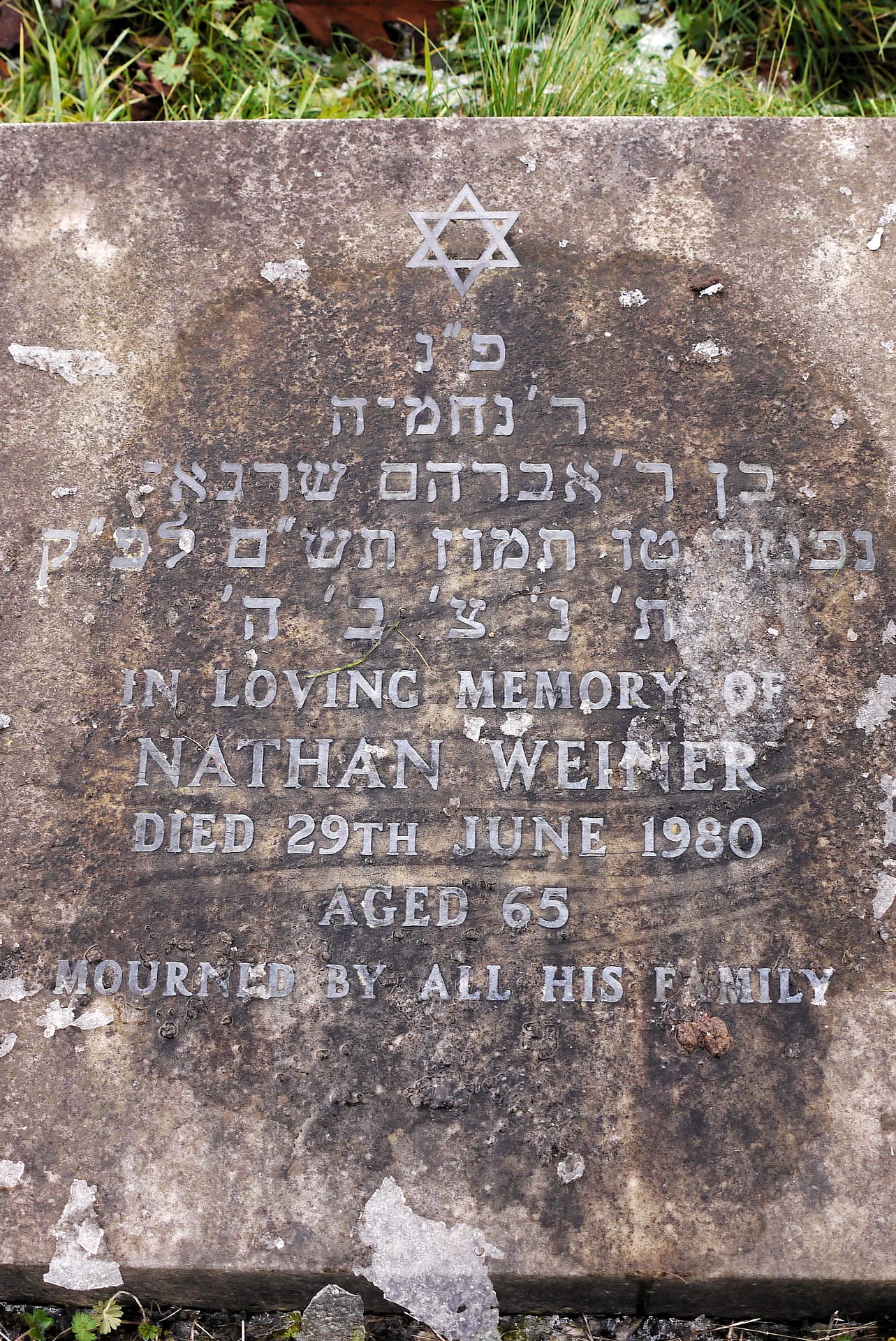 (2724) Nathan WEINER died 27/06/1980, buried at Kinson, plot no. M3-120 (K3-M3-120.jpg)