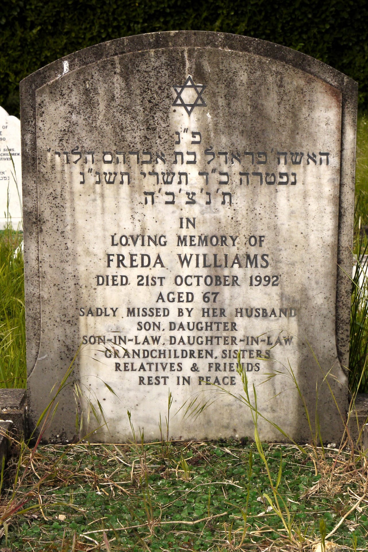 (2738) Freda WILLIAMS died 19/10/1992, buried at Kinson, plot no. R3-146 (K3-R3-146.jpg)