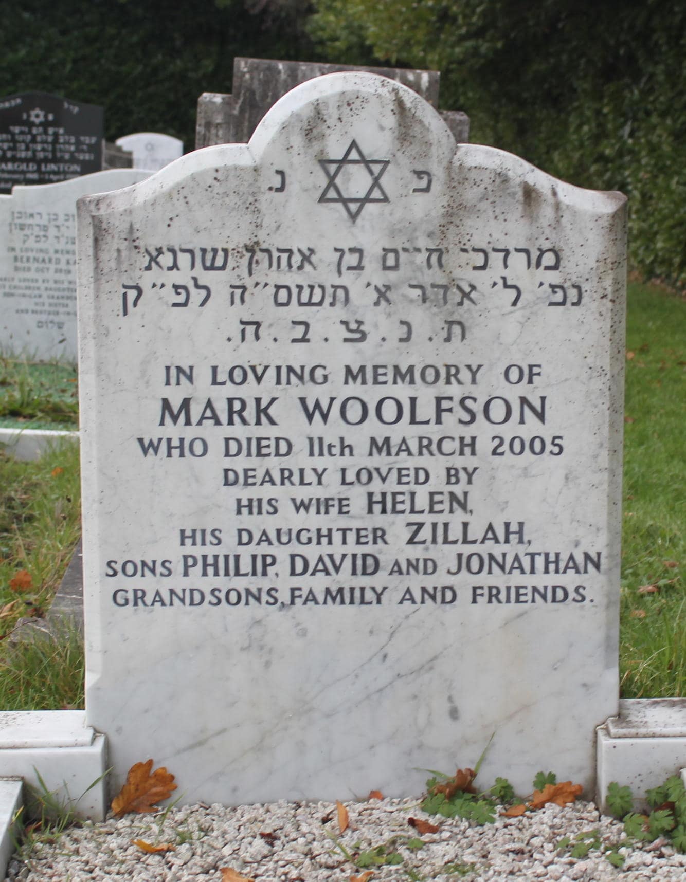 (2750) Mark WOOLFSON died 11/03/2005, buried at Kinson, plot no. J3-152 (K3-J3-152.jpg)