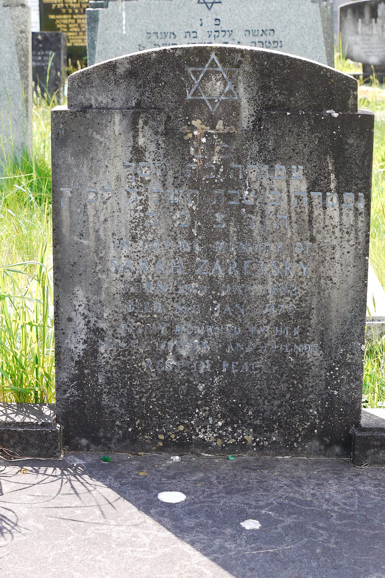(2758) Sarah ZARETSKY died 03/01/1975, buried at Kinson, plot no. N3-104 (K3-N3-104.jpg)