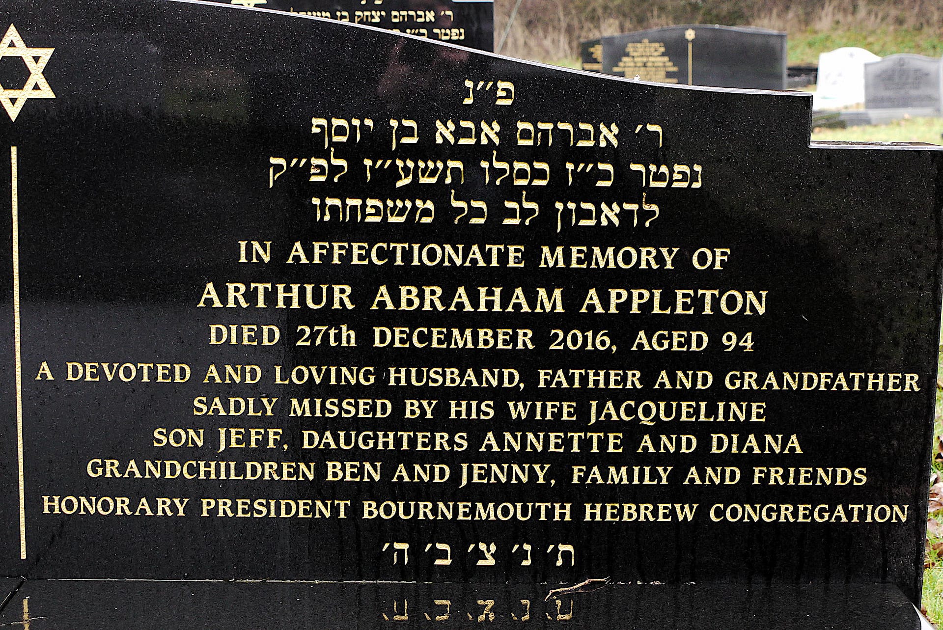 (2770) Arthur APPLETON died 27/12/2016, buried at Throop, plot no. N101 (T-N-101.jpg)