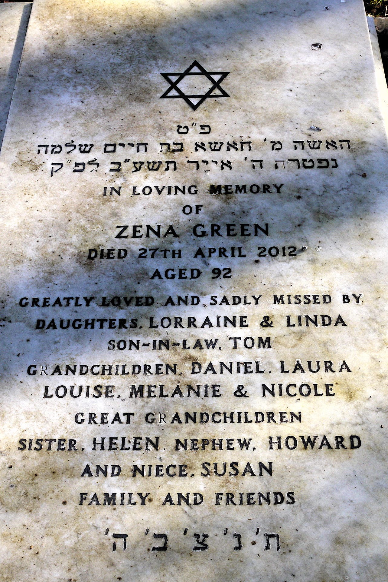 (2883) Zena GREEN died 27/04/2012, buried at Throop, plot no. F22 (T-F-22.jpg)