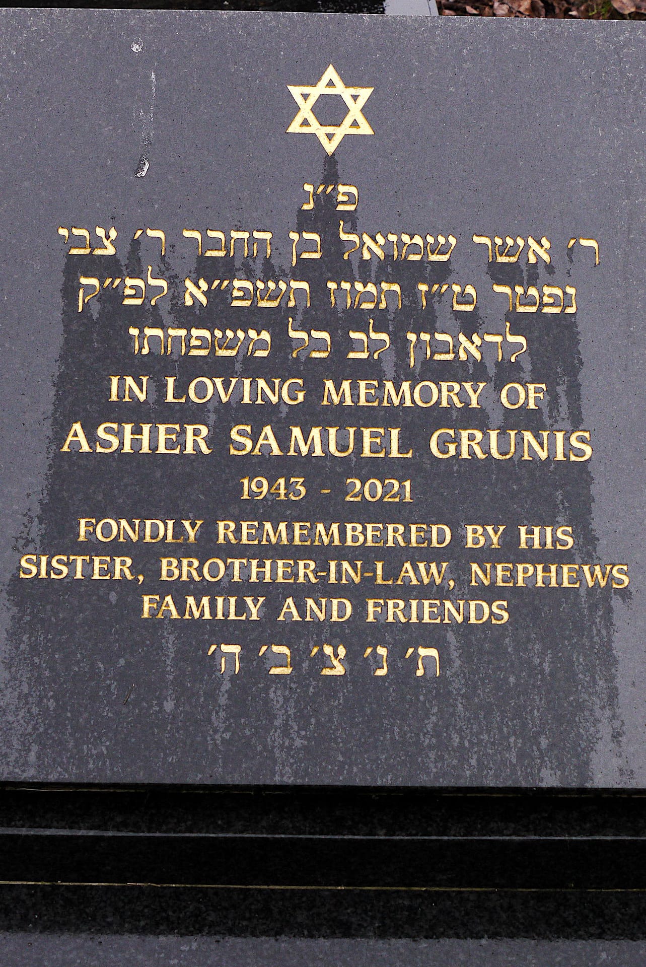 (2891) Asher GRUNIS died 27/06/2021, buried at Throop, plot no. O101 (T-O-101.jpg)