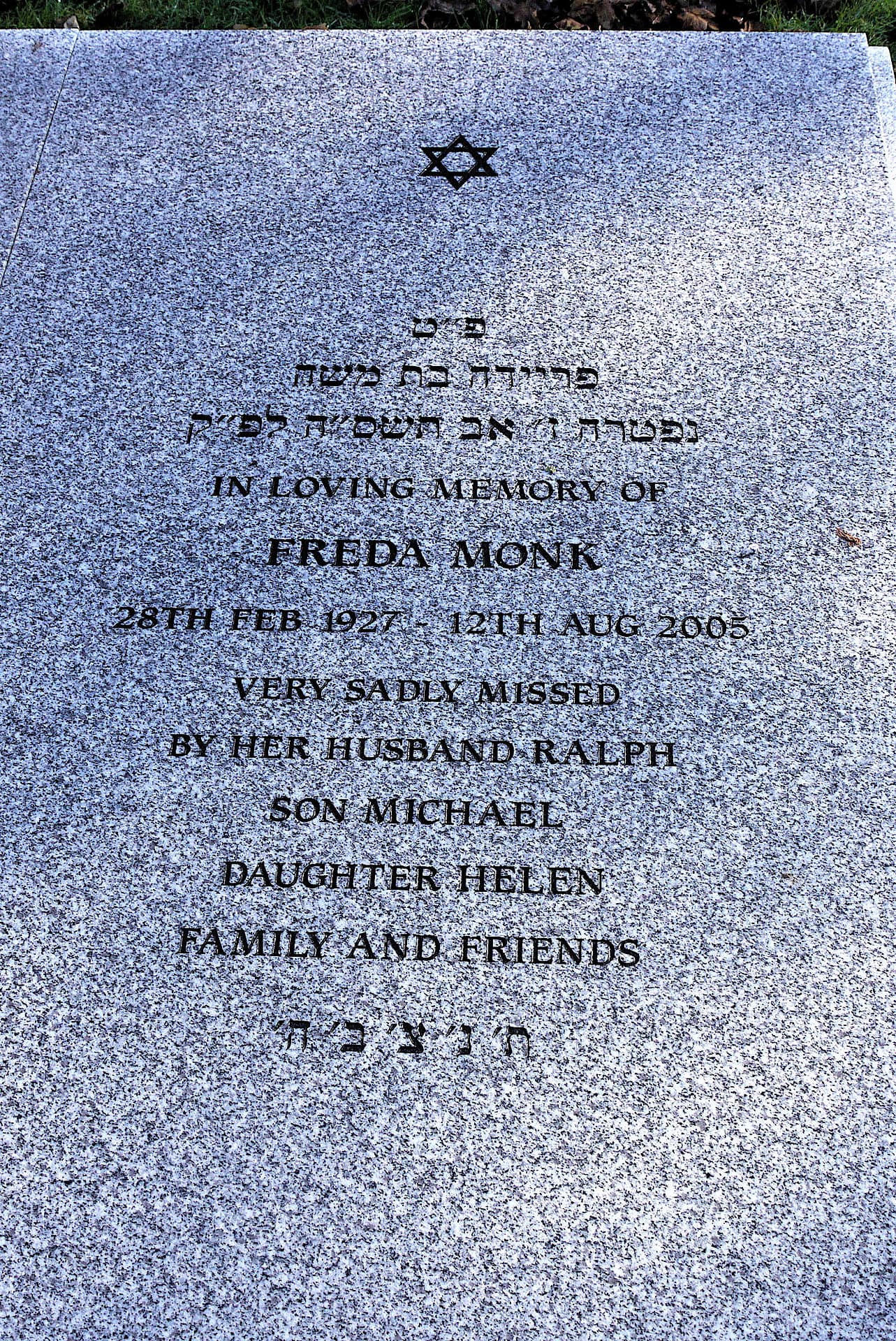 (2985) Freda MONK died 12/08/2005, buried at Throop, plot no. G31 (T-G-31.jpg)