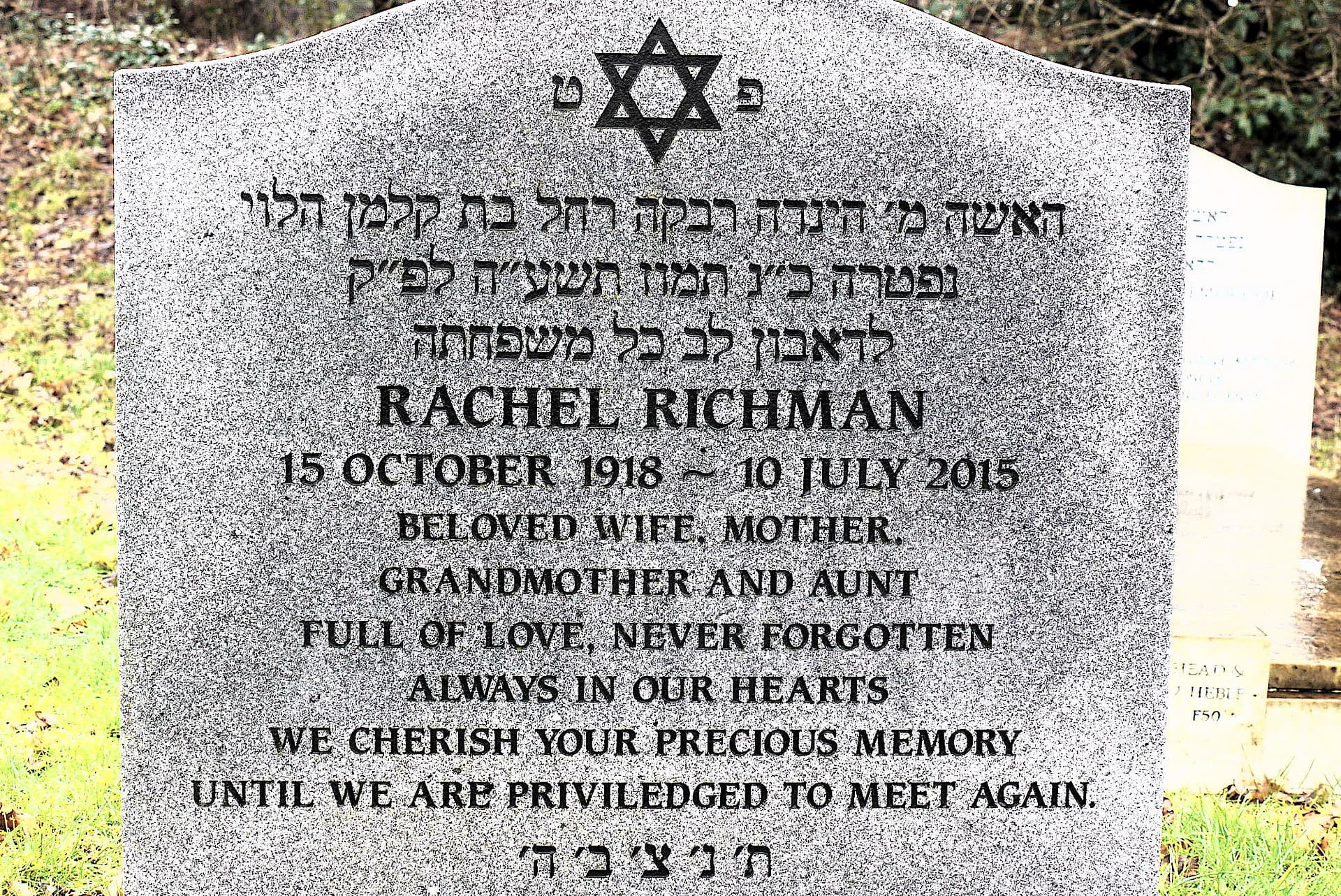 (3027) Rachel RICHMAN died 10/07/2015, buried at Throop, plot no. G50 (T-G-50.jpg)