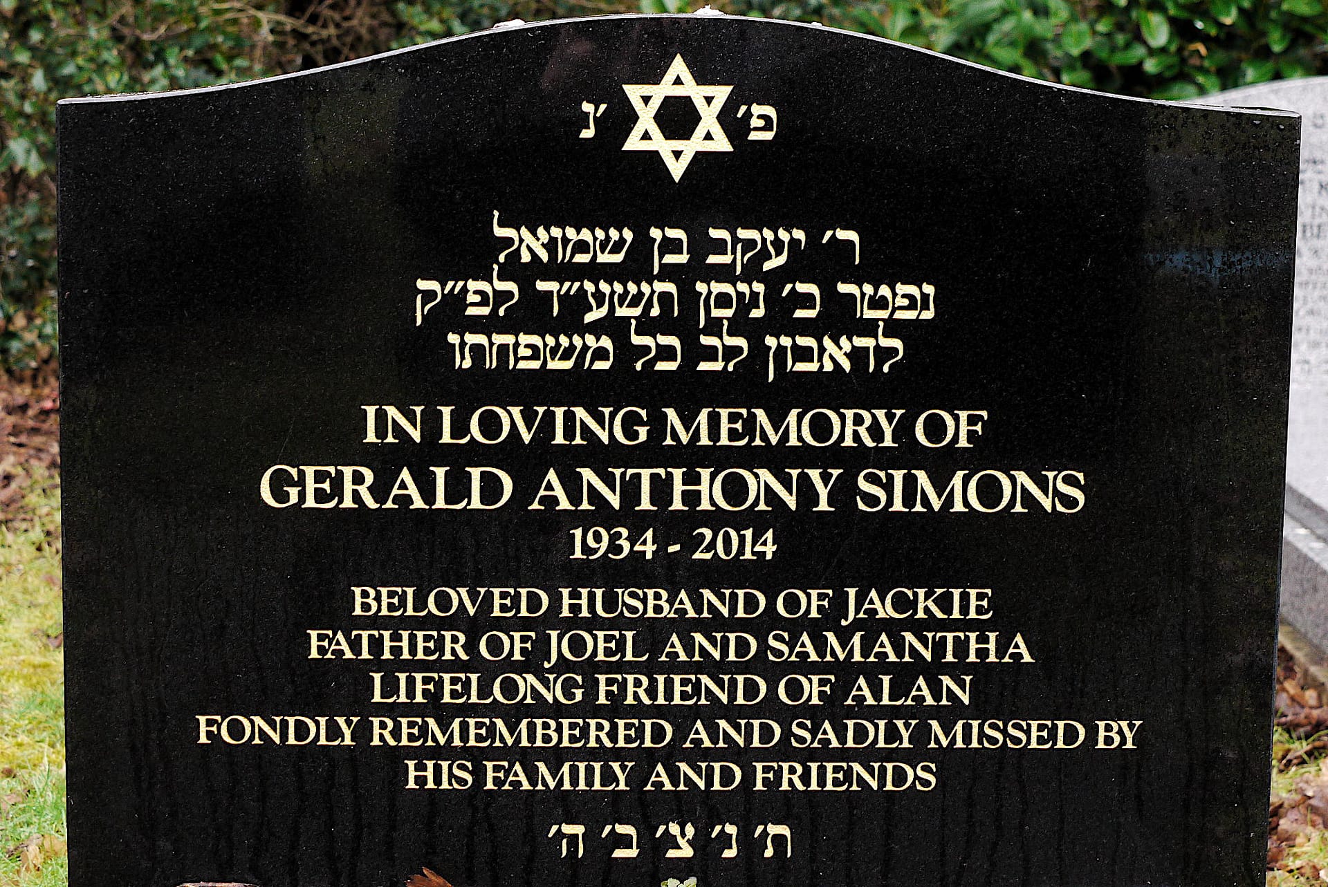 (3069) Gerald SIMONS died 20/04/2014, buried at Throop, plot no. F42 (T-F-42.jpg)