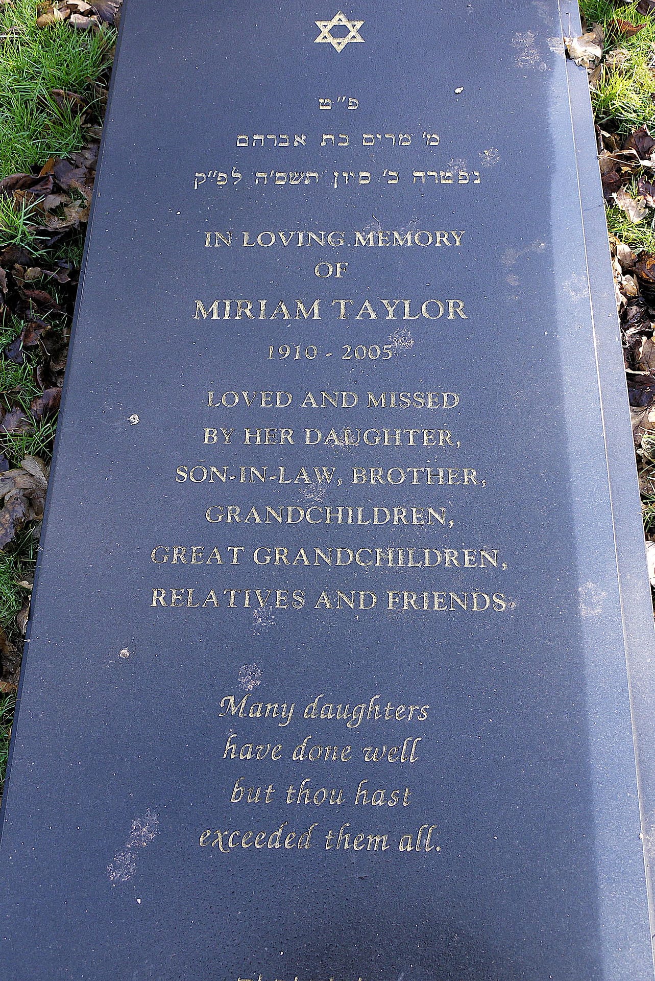 (3092) Miriam TAYLOR died 27/06/2005, buried at Throop, plot no. H31 (T-H-31.jpg)
