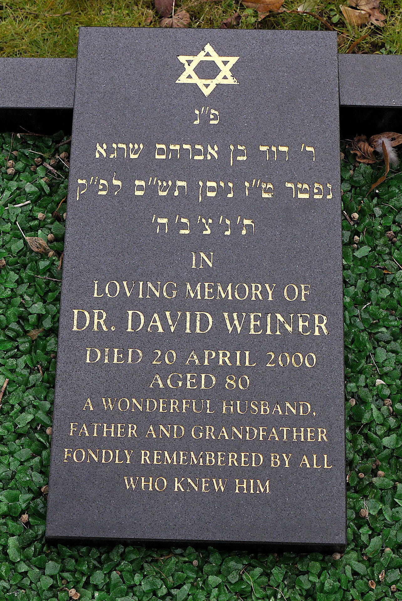 (3107) David WEINER died 20/04/2000, buried at Throop, plot no. L14 (T-L-14.jpg)