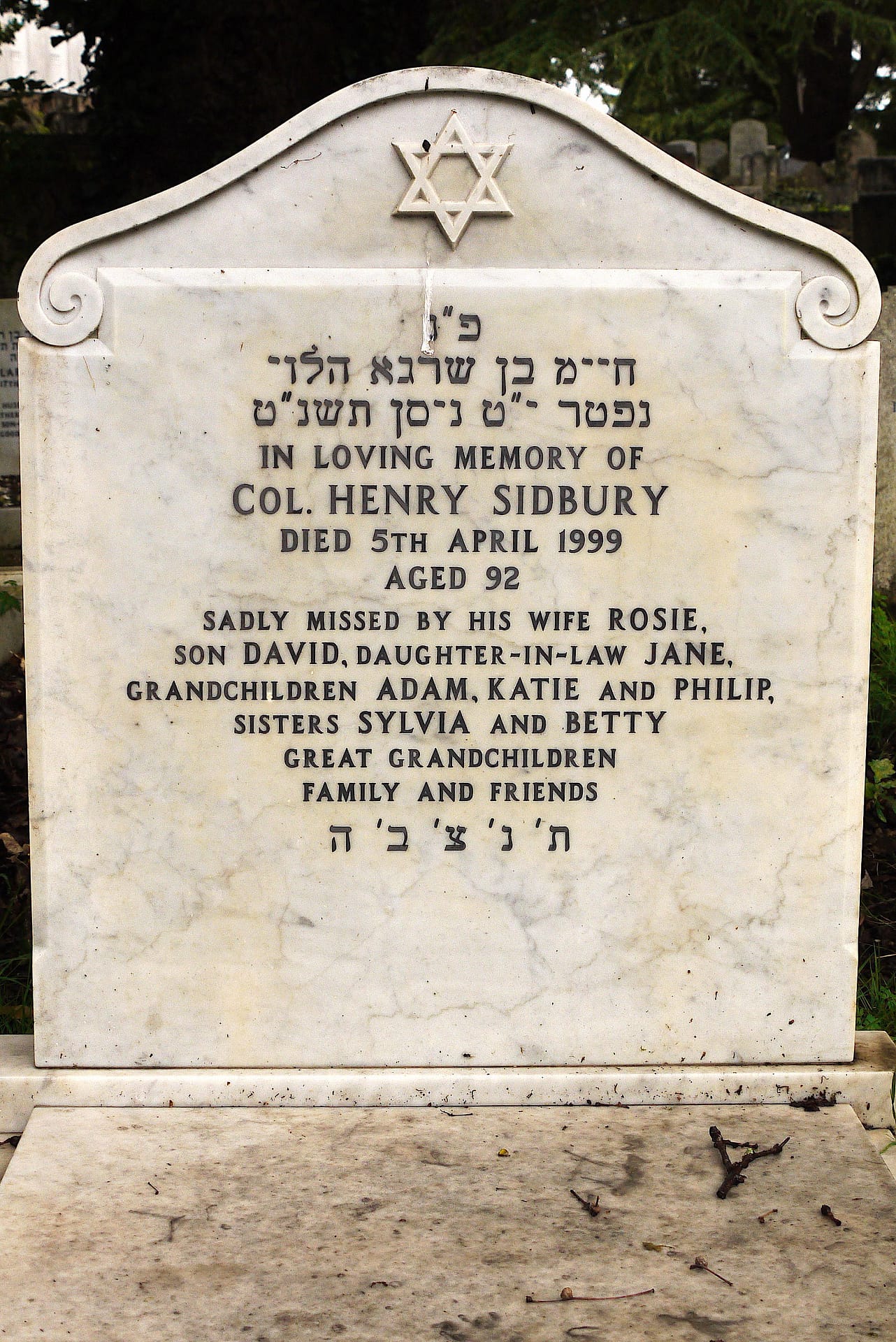 (3166) Henry Sidbury died 5/4/1999, buried at Kinson, plot no. C37 (K-C-37.jpg)