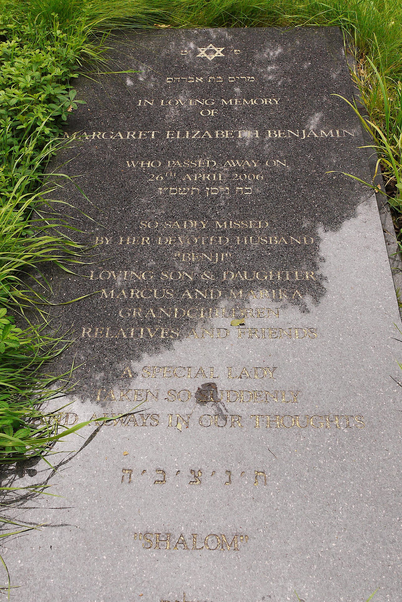 (3294) Margaret Benjamin died 26/04/2006, buried at Kinson, plot no. E65 (K-E-65.jpg)