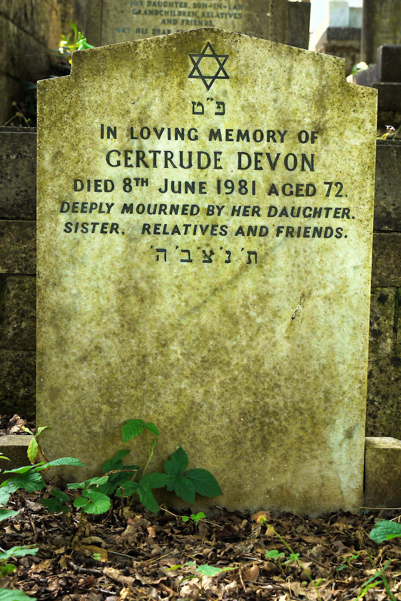 (3316) Gertrude Devon died 8/6/1981, buried at Kinson, plot no. F30 (K-F-30.jpg)