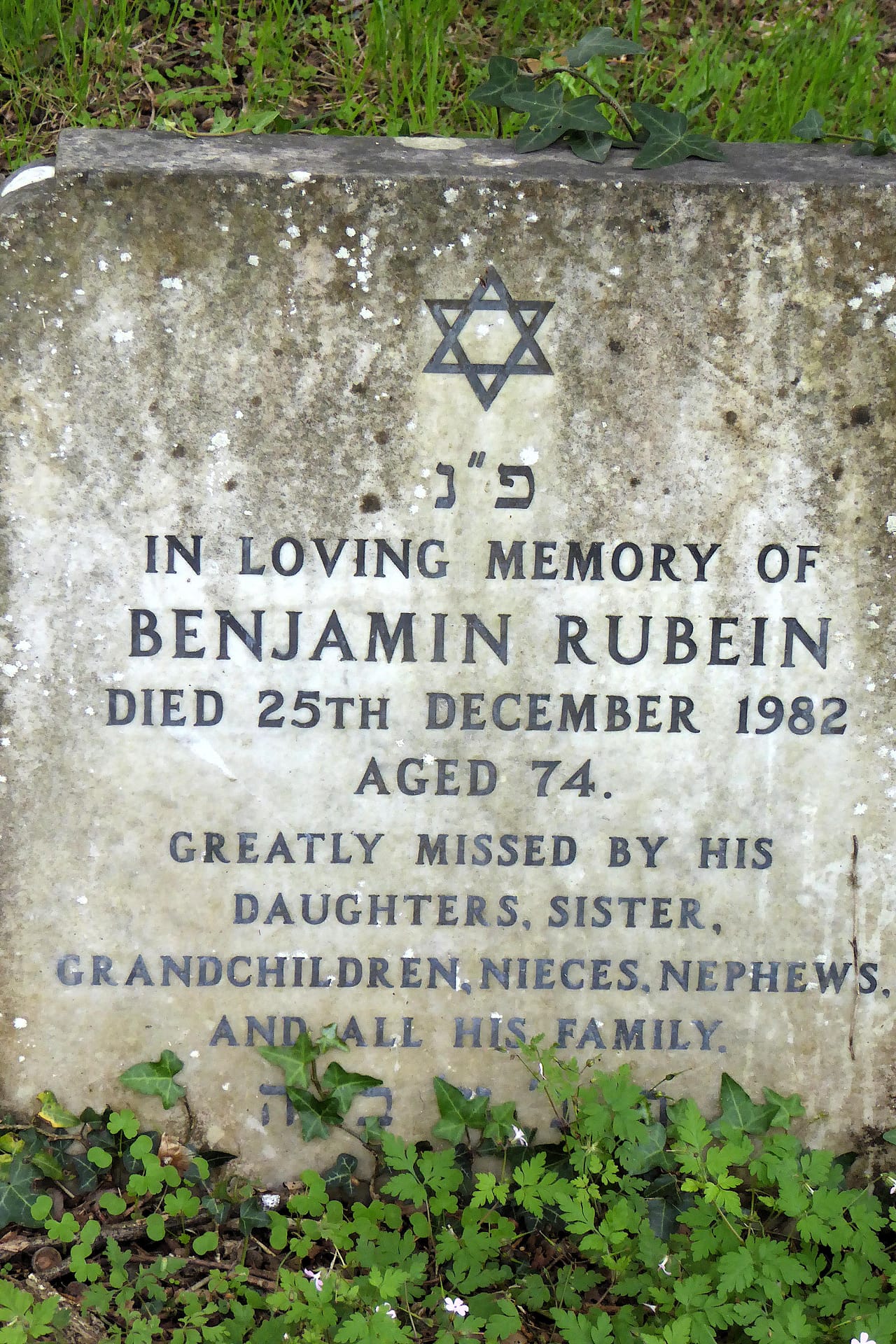 (3385) Benjamin Rubein died 25/12/1982, buried at Kinson, plot no. G43 (K-G-43.jpg)