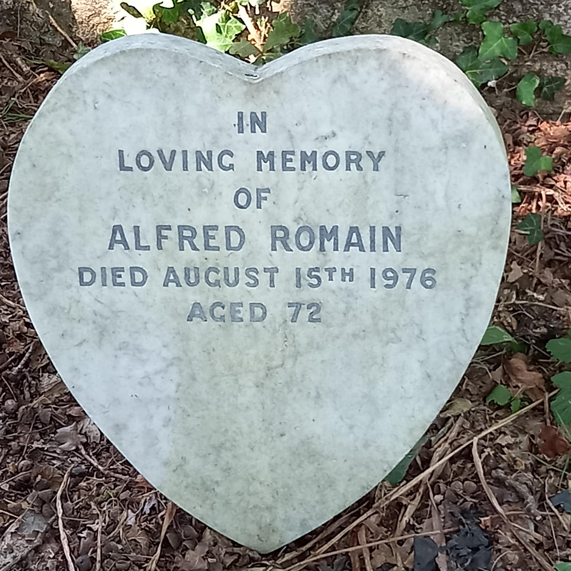 (3502) Alfred Romain died 15/8/1976, buried at Kinson, plot no. J39 (K-J-39.jpg)