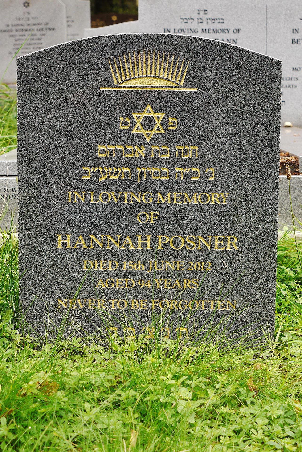 (3532) Hannah Posner died 15/06/2012, buried at Kinson, plot no. J71 (K-J-71.jpg)