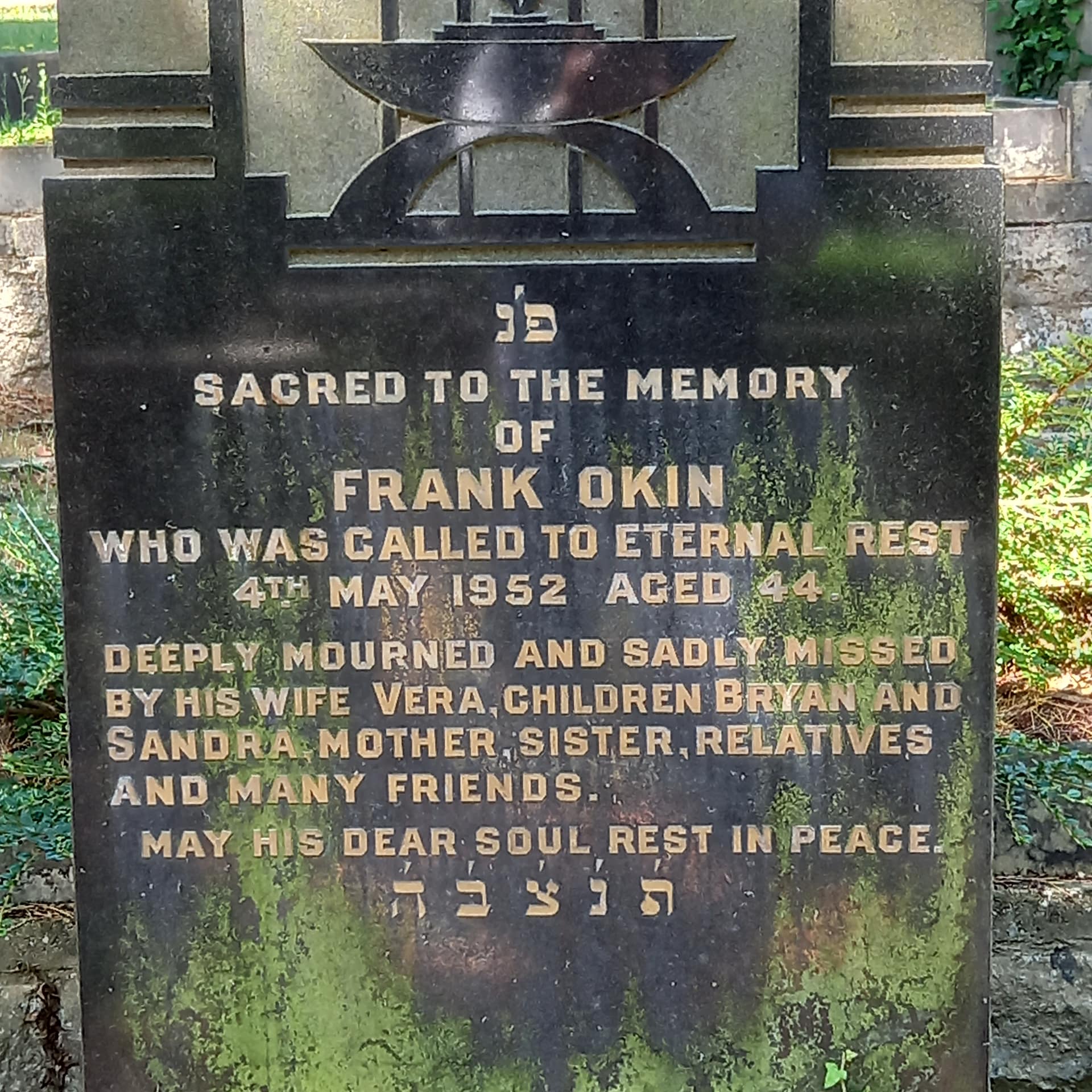 (3625) Frank Okin died 06/05/1952, buried at Kinson, plot no. L29 (K-L-29.jpg)