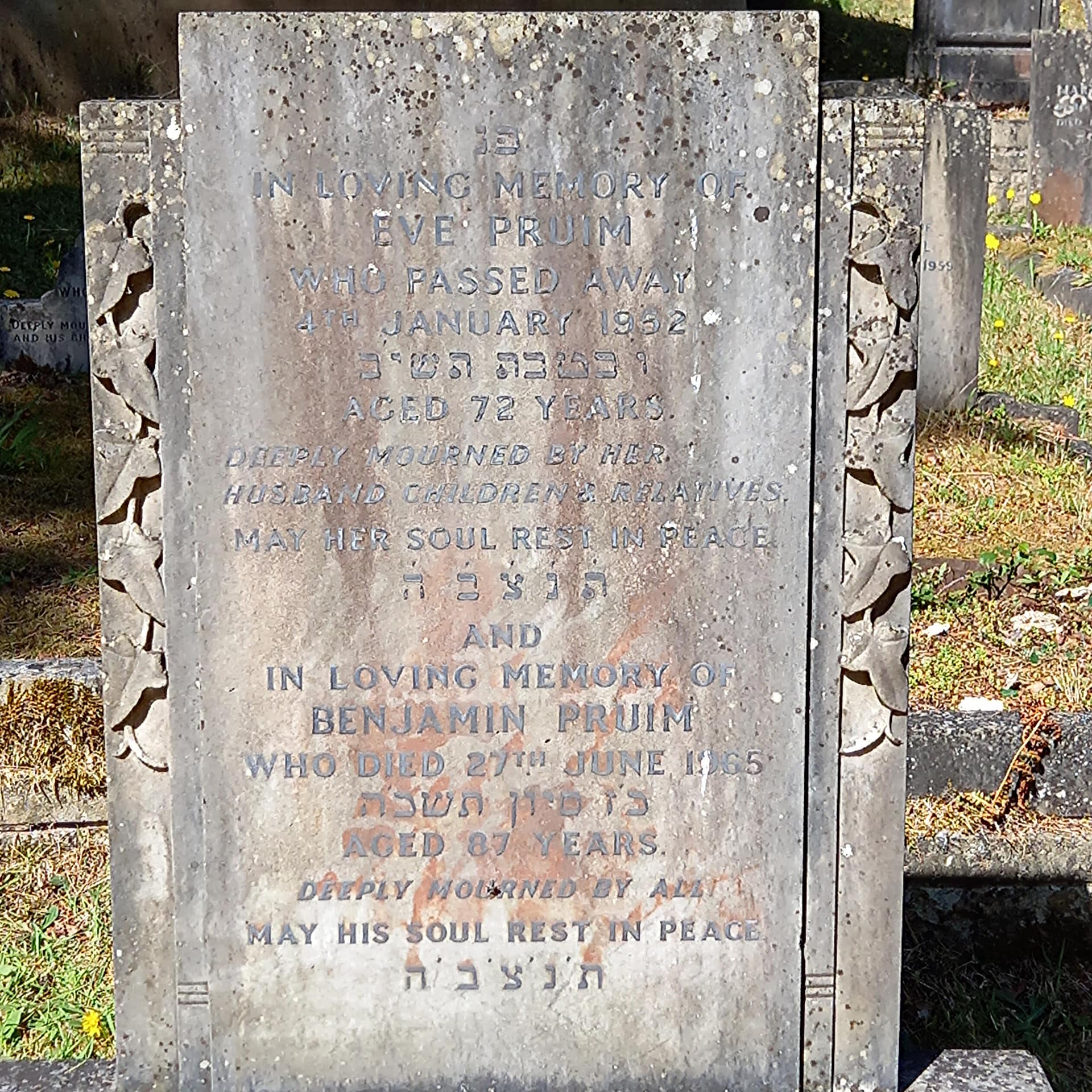 (3687) Benjamin Pruim died 28/06/1965, buried at Kinson, plot no. M33 (K-M-33.jpg)