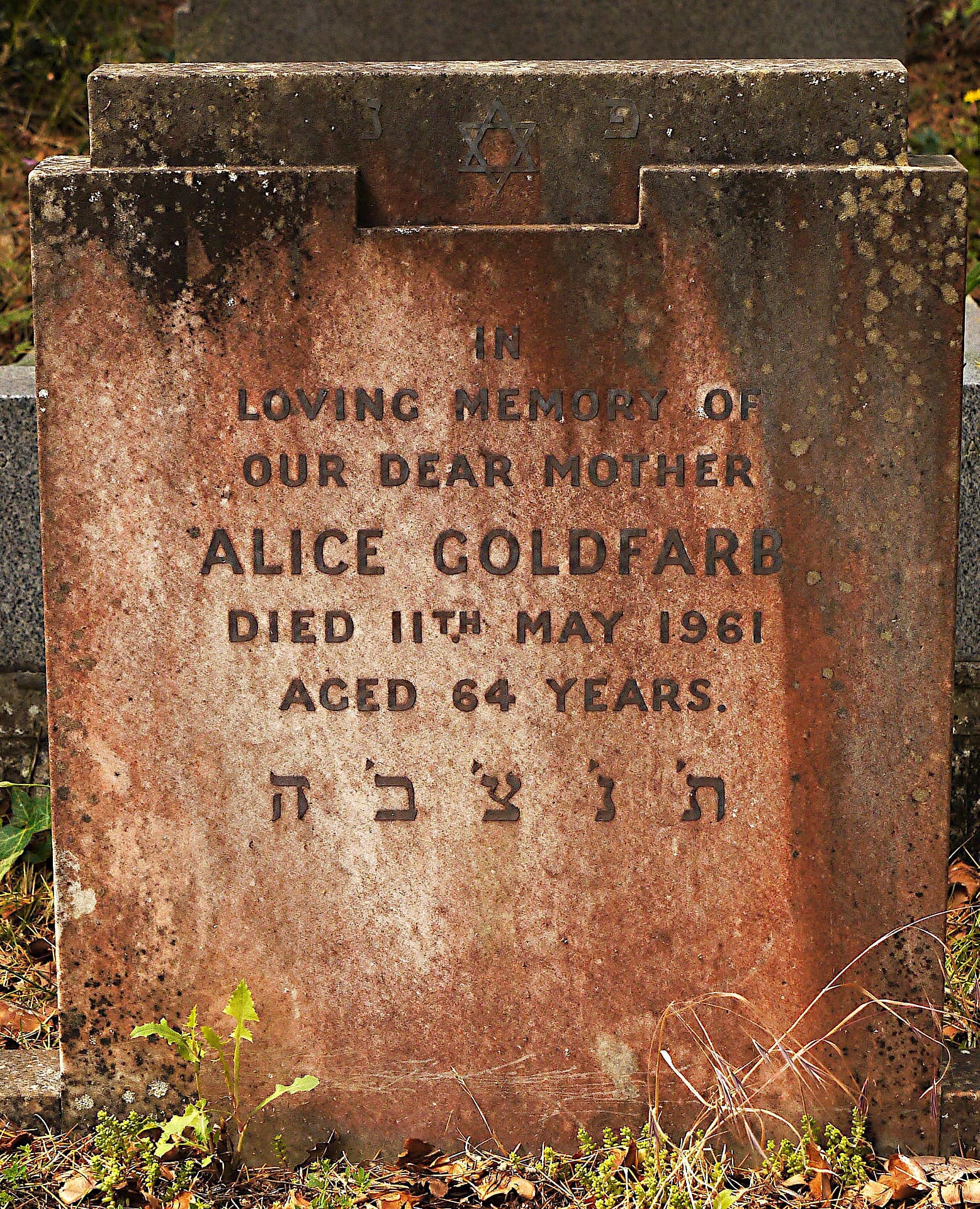 (3781) Alice Goldfarb died 12/05/1961, buried at Kinson, plot no. O40 (K-O-40.jpg)