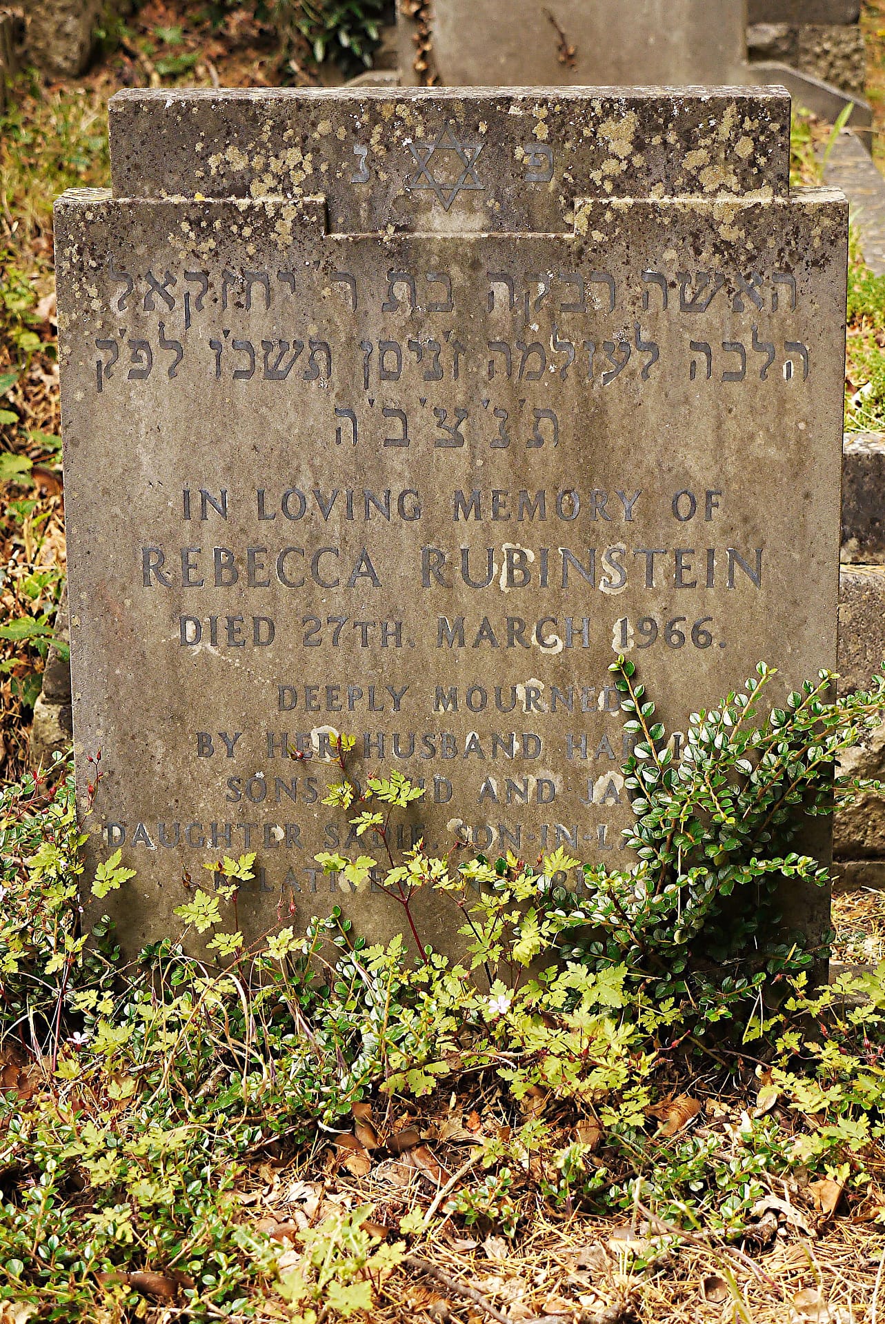 (3826) Rebecca Rubinstein died 28/03/1966, buried at Kinson, plot no. P45 (K-P-45.jpg)